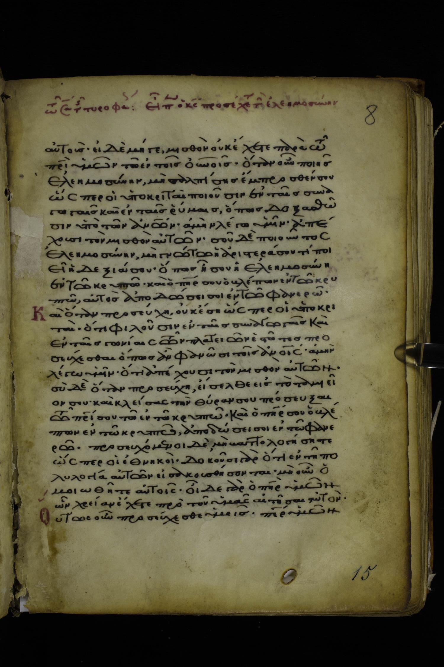 Twelfth or thirteenth century minuscule of the Gospels on parchment; 171 leaves, 1 column, 26-28 lines per column. Images were taken at the National Library of Greece in Athens.
