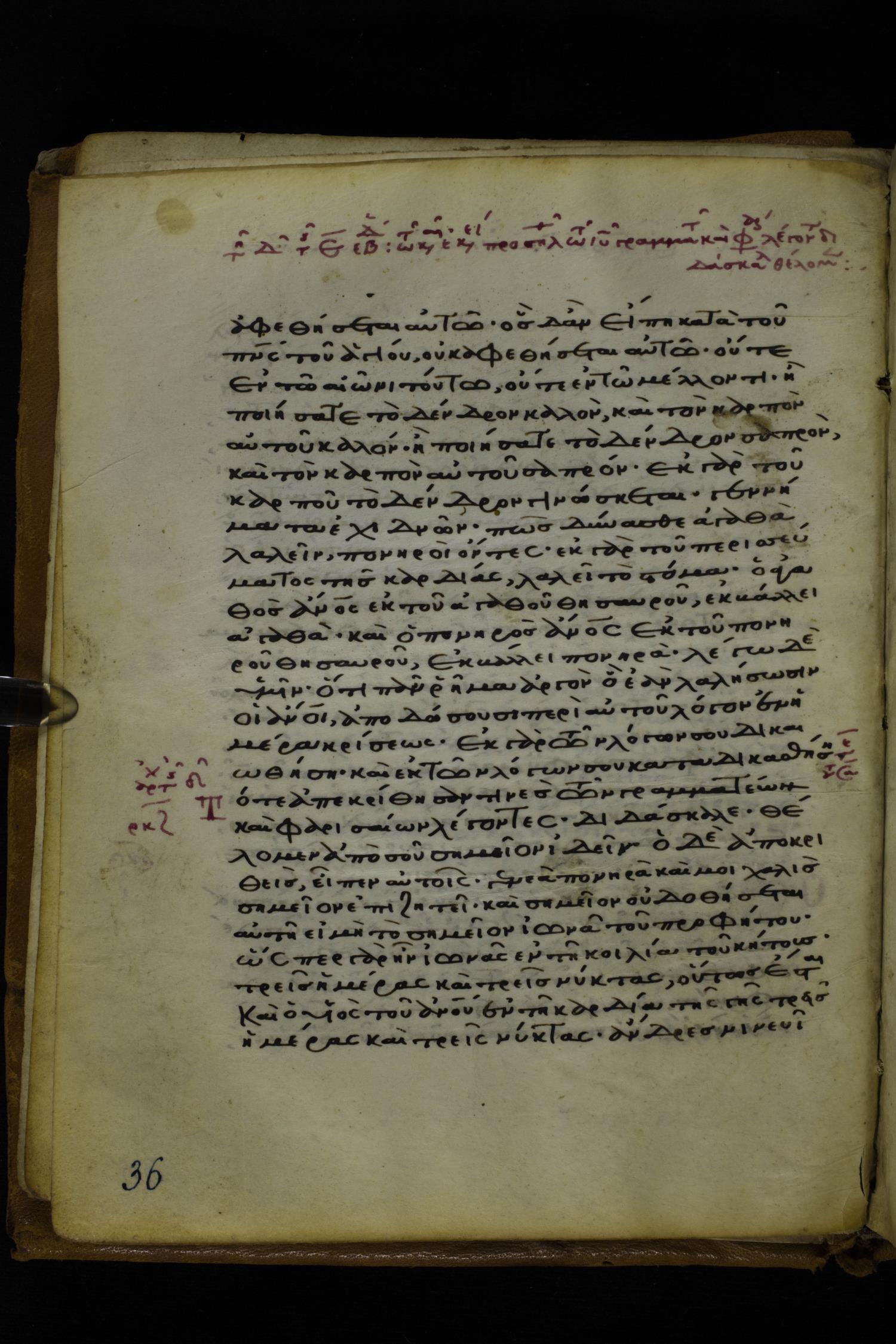 Twelfth or thirteenth century minuscule of the Gospels on parchment; 171 leaves, 1 column, 26-28 lines per column. Images were taken at the National Library of Greece in Athens.