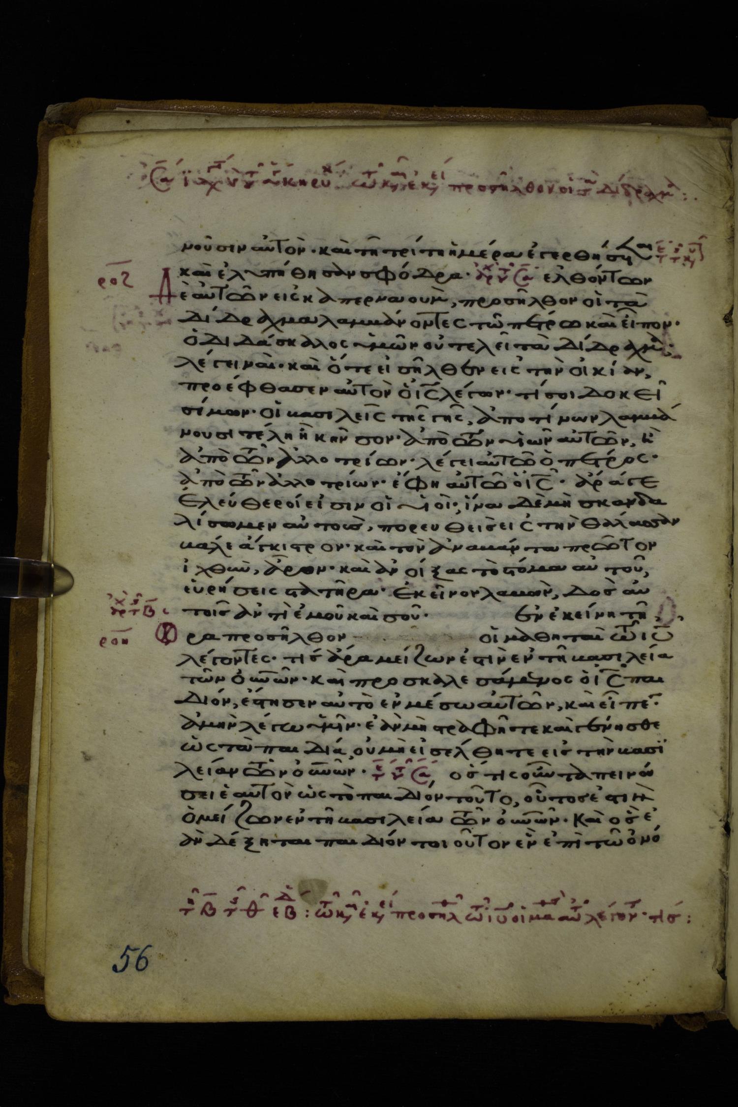 Twelfth or thirteenth century minuscule of the Gospels on parchment; 171 leaves, 1 column, 26-28 lines per column. Images were taken at the National Library of Greece in Athens.