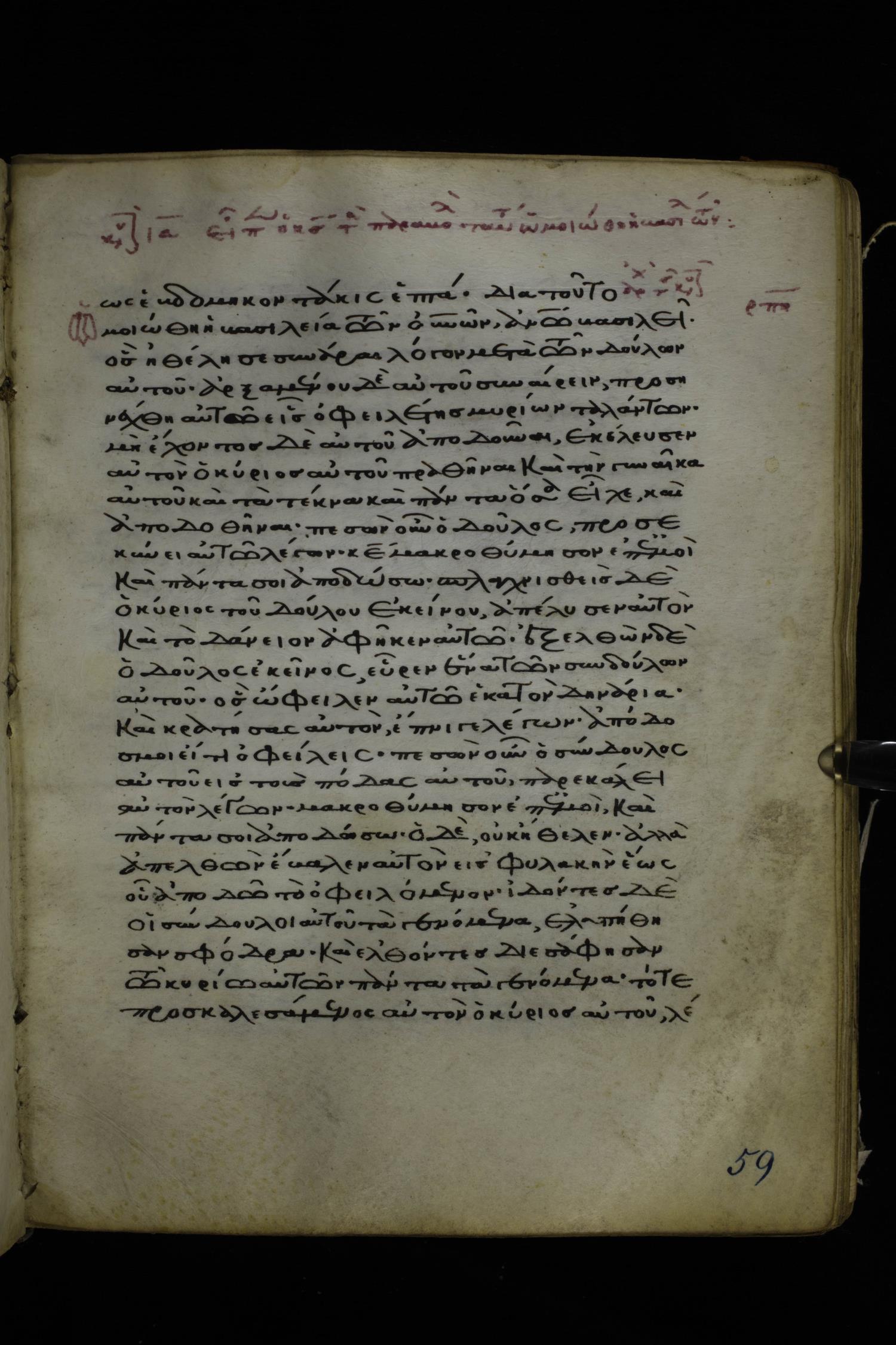 Twelfth or thirteenth century minuscule of the Gospels on parchment; 171 leaves, 1 column, 26-28 lines per column. Images were taken at the National Library of Greece in Athens.