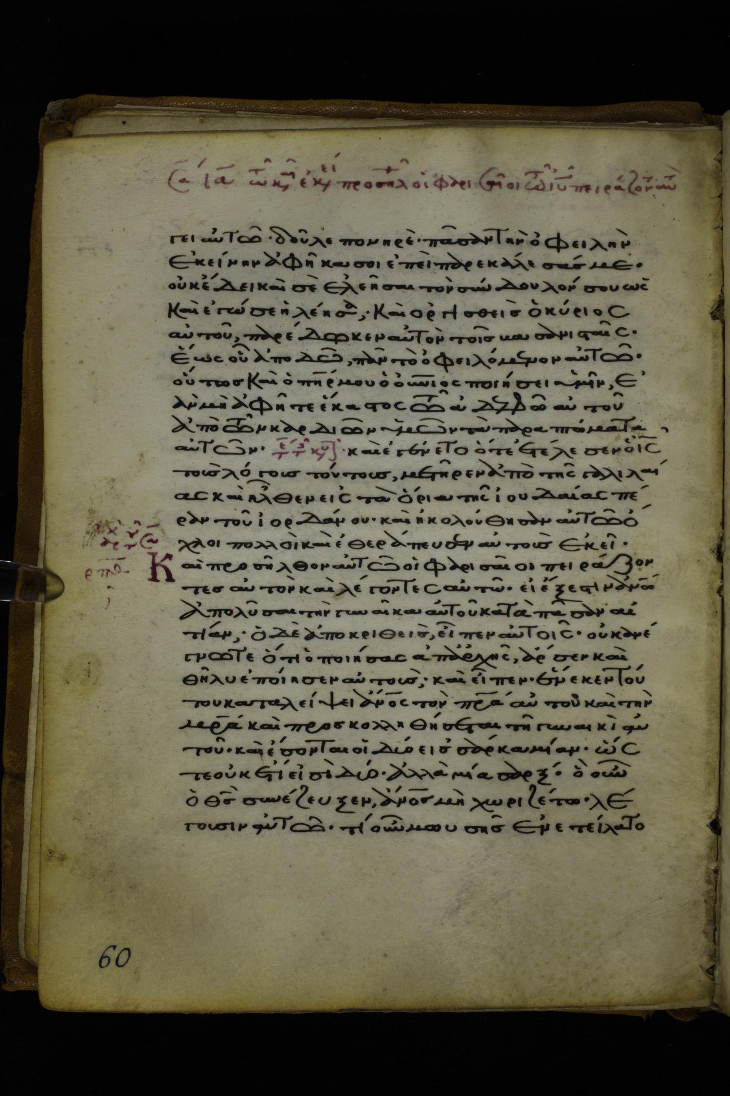 Twelfth or thirteenth century minuscule of the Gospels on parchment; 171 leaves, 1 column, 26-28 lines per column. Images were taken at the National Library of Greece in Athens.