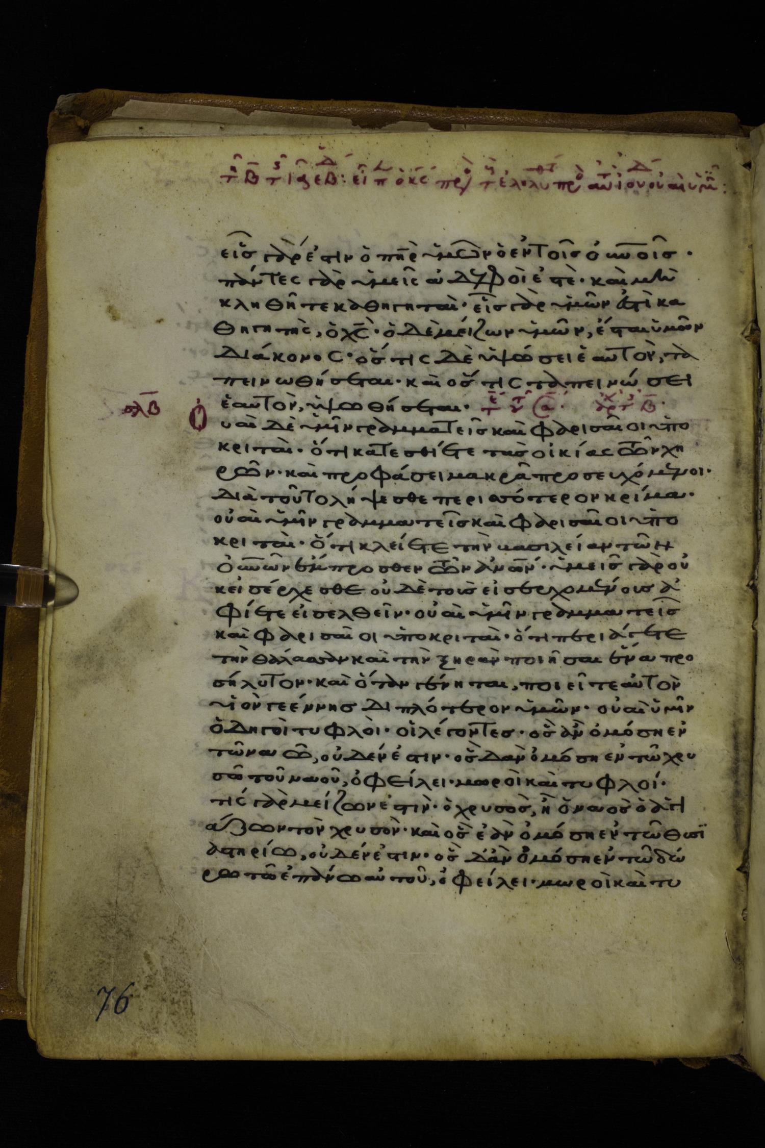 Twelfth or thirteenth century minuscule of the Gospels on parchment; 171 leaves, 1 column, 26-28 lines per column. Images were taken at the National Library of Greece in Athens.