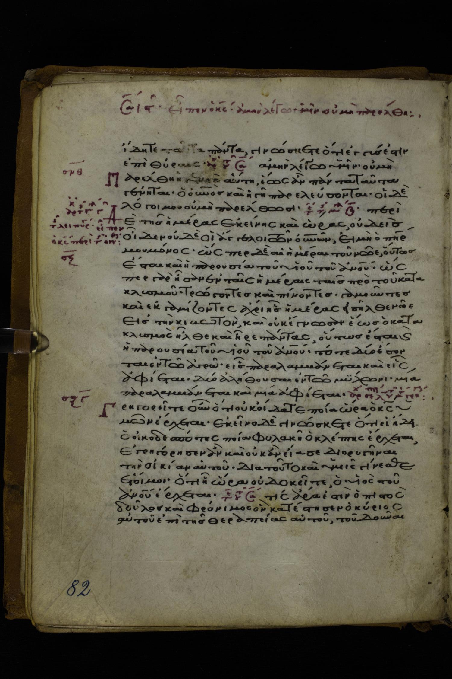 Twelfth or thirteenth century minuscule of the Gospels on parchment; 171 leaves, 1 column, 26-28 lines per column. Images were taken at the National Library of Greece in Athens.