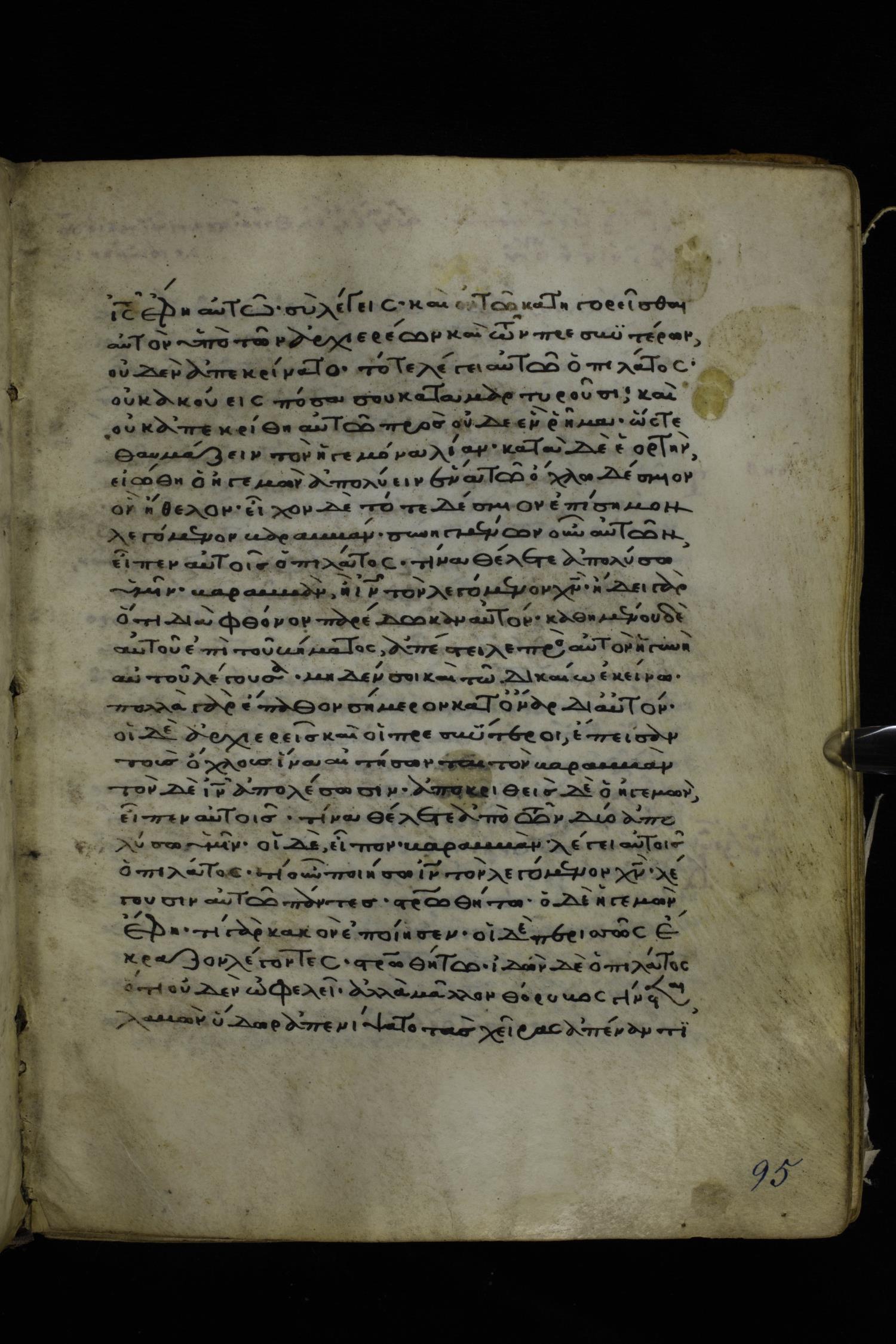 Twelfth or thirteenth century minuscule of the Gospels on parchment; 171 leaves, 1 column, 26-28 lines per column. Images were taken at the National Library of Greece in Athens.