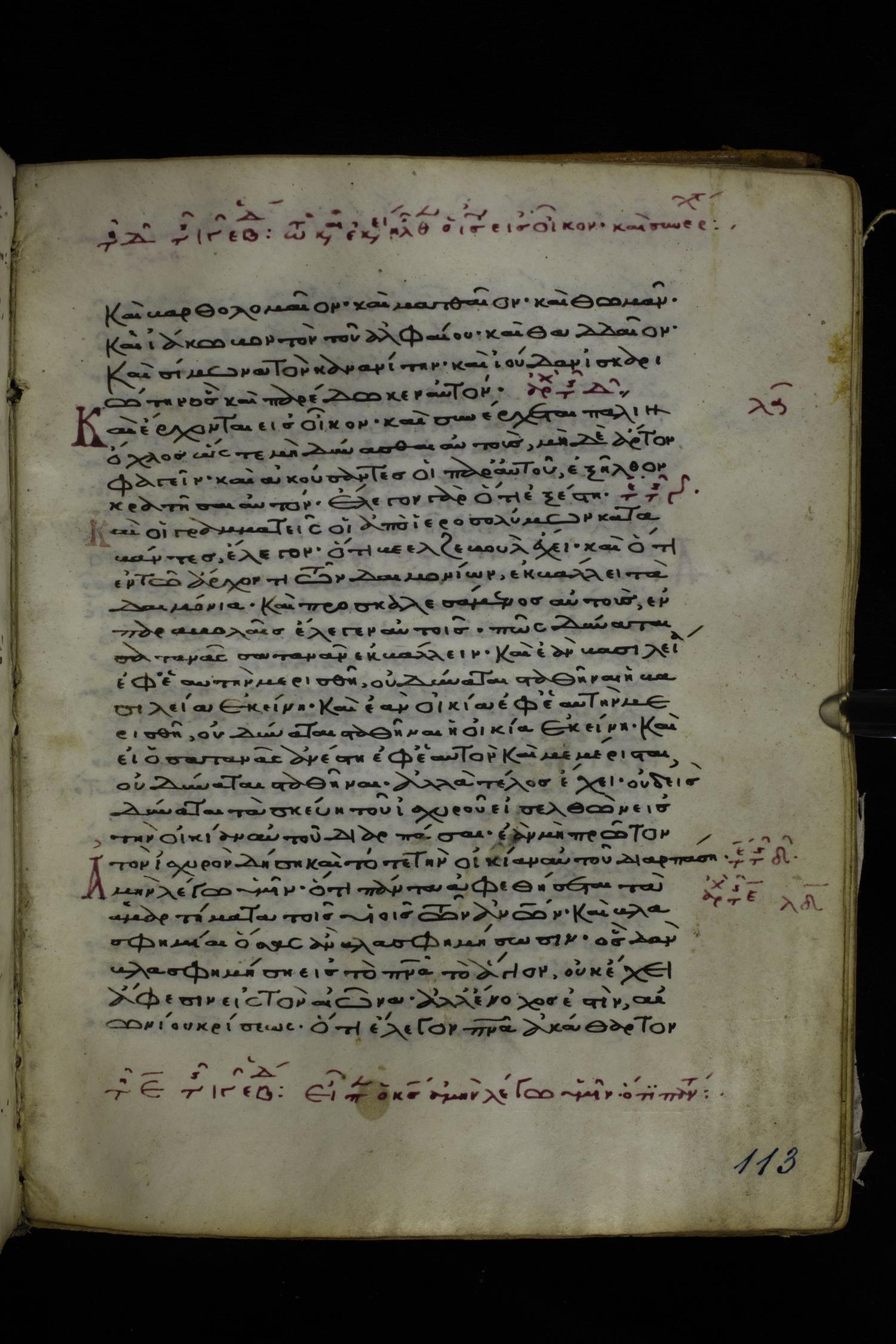 Twelfth or thirteenth century minuscule of the Gospels on parchment; 171 leaves, 1 column, 26-28 lines per column. Images were taken at the National Library of Greece in Athens.