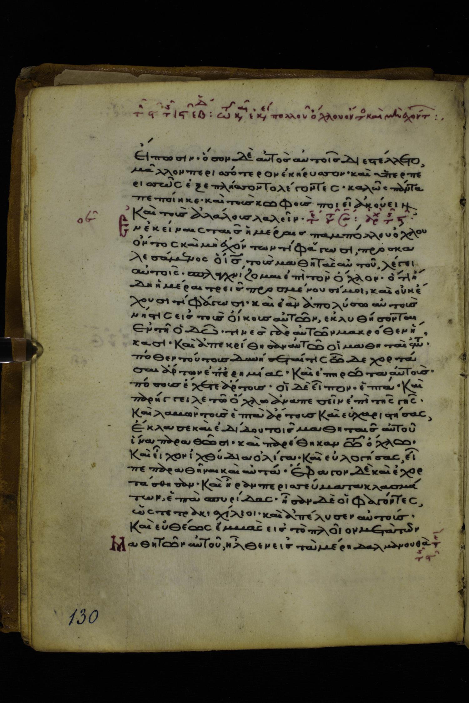 Twelfth or thirteenth century minuscule of the Gospels on parchment; 171 leaves, 1 column, 26-28 lines per column. Images were taken at the National Library of Greece in Athens.