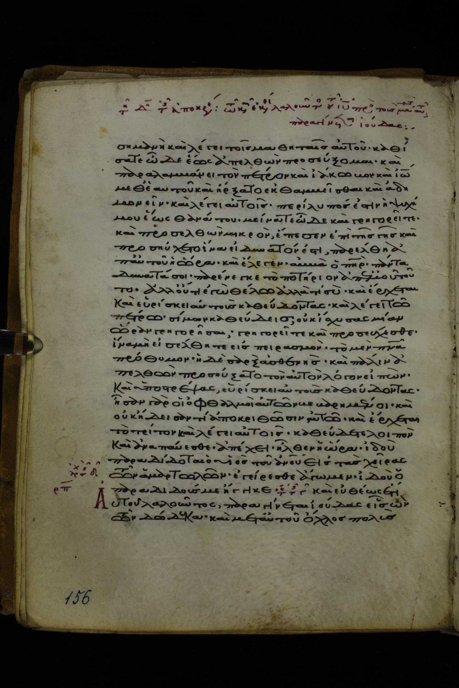 Twelfth or thirteenth century minuscule of the Gospels on parchment; 171 leaves, 1 column, 26-28 lines per column. Images were taken at the National Library of Greece in Athens.