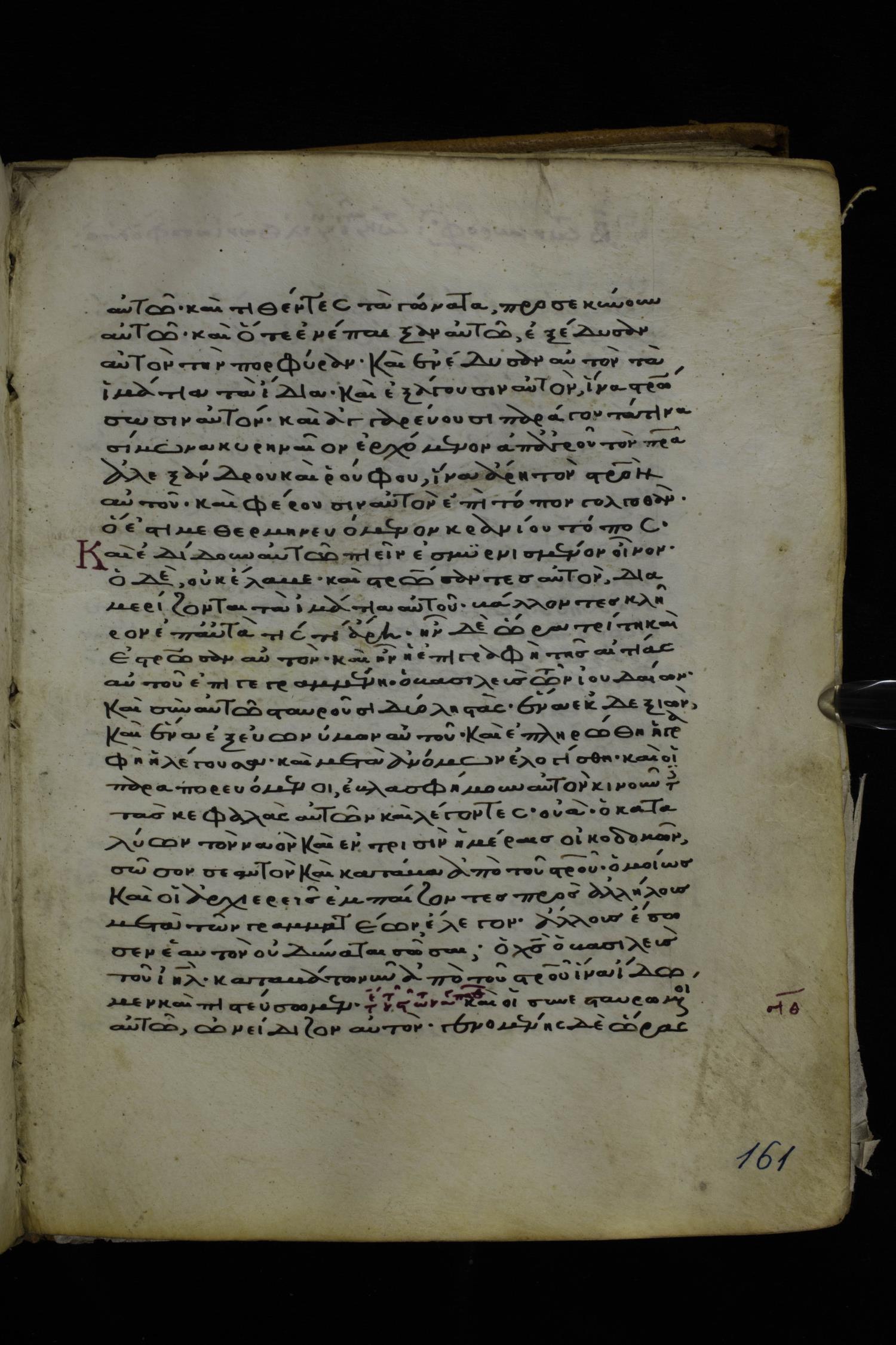 Twelfth or thirteenth century minuscule of the Gospels on parchment; 171 leaves, 1 column, 26-28 lines per column. Images were taken at the National Library of Greece in Athens.