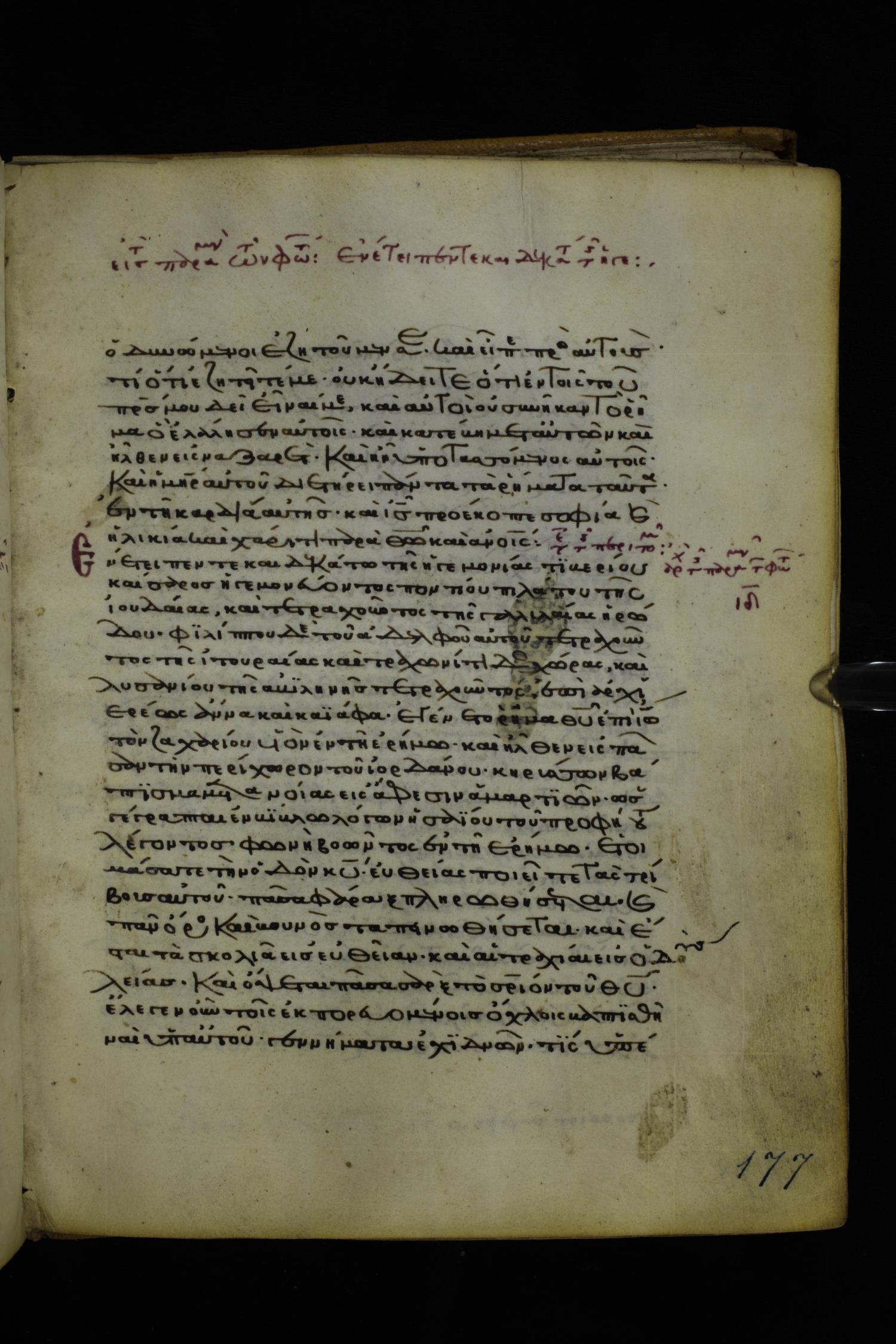 Twelfth or thirteenth century minuscule of the Gospels on parchment; 171 leaves, 1 column, 26-28 lines per column. Images were taken at the National Library of Greece in Athens.