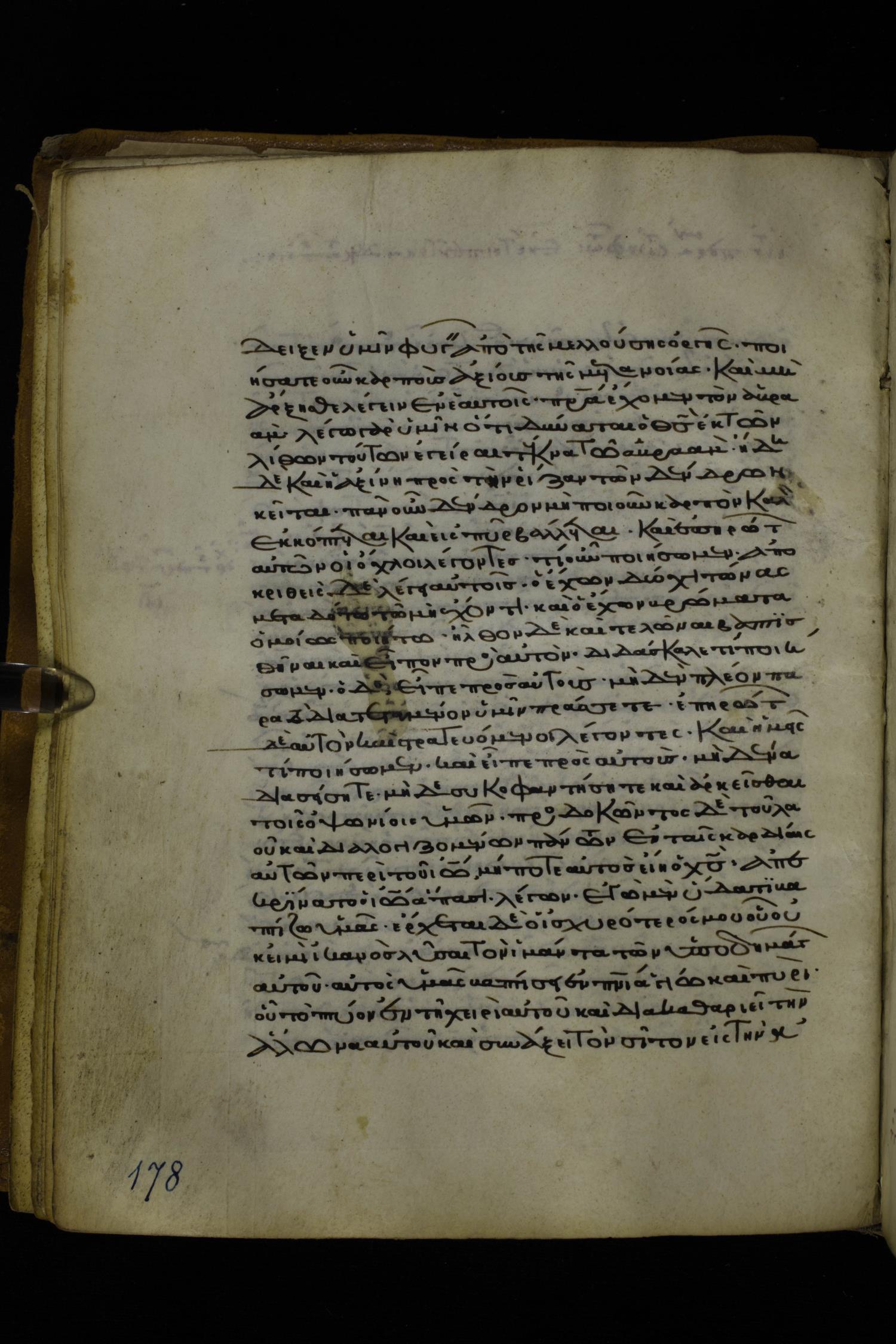 Twelfth or thirteenth century minuscule of the Gospels on parchment; 171 leaves, 1 column, 26-28 lines per column. Images were taken at the National Library of Greece in Athens.