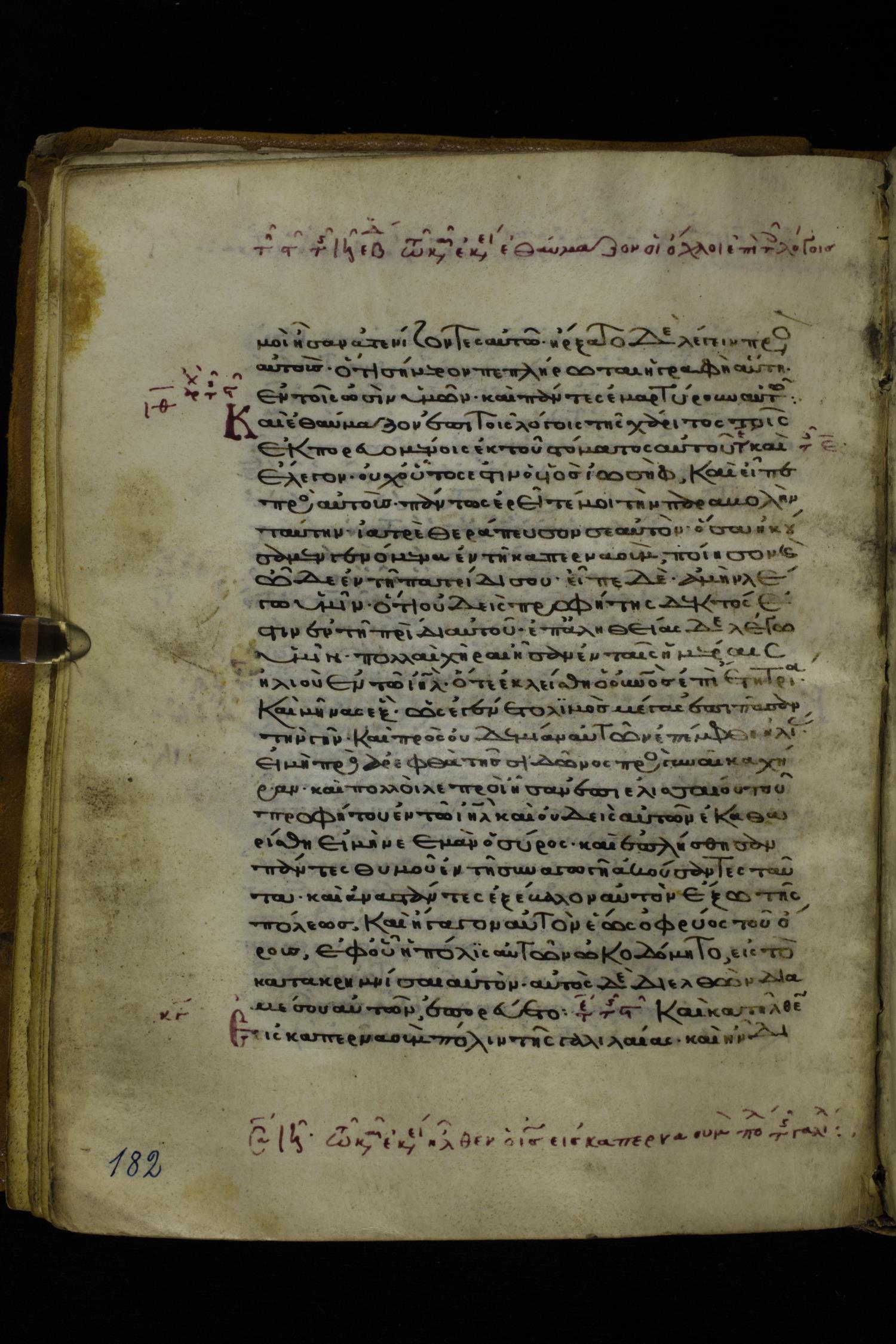 Twelfth or thirteenth century minuscule of the Gospels on parchment; 171 leaves, 1 column, 26-28 lines per column. Images were taken at the National Library of Greece in Athens.