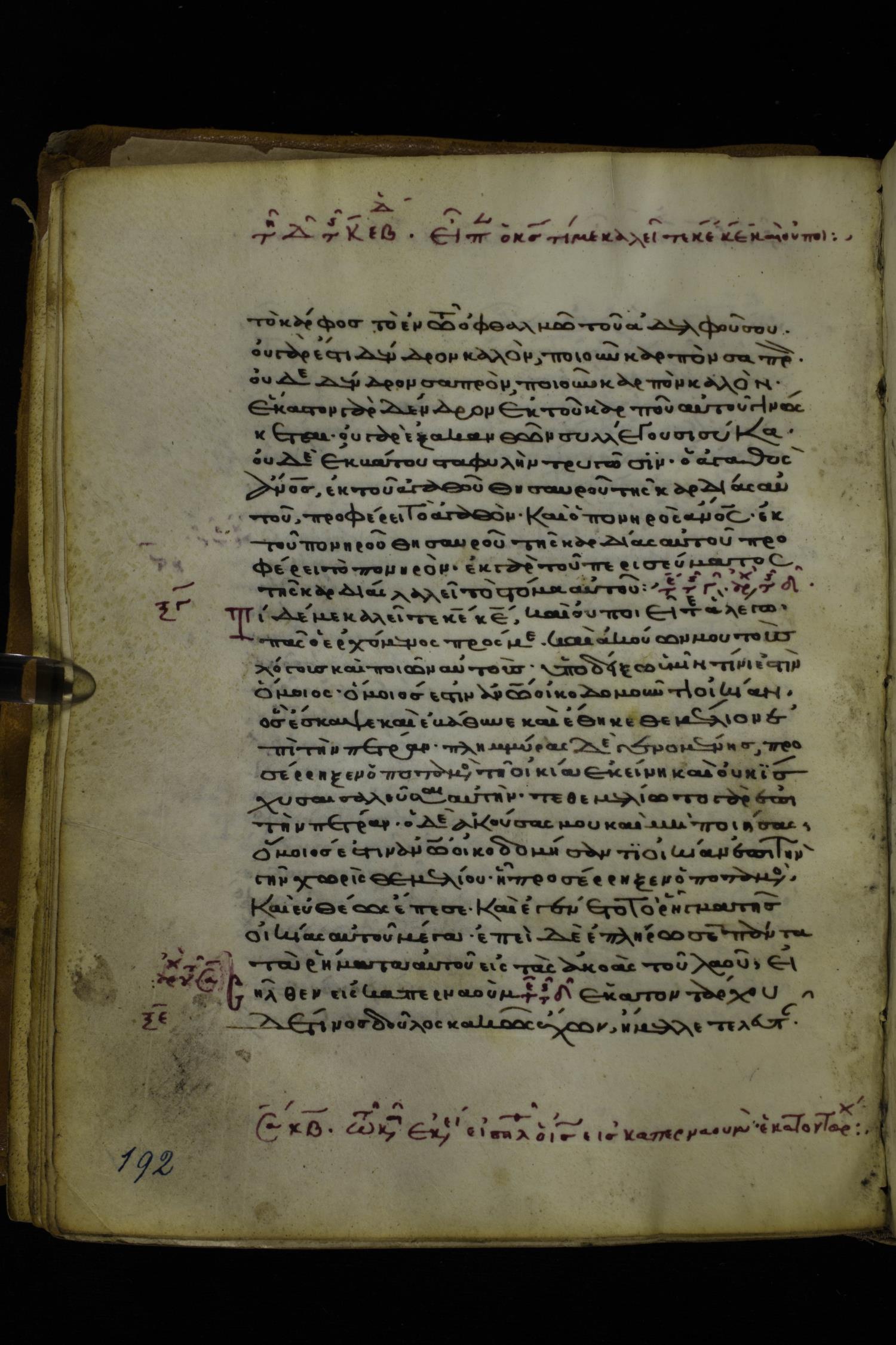 Twelfth or thirteenth century minuscule of the Gospels on parchment; 171 leaves, 1 column, 26-28 lines per column. Images were taken at the National Library of Greece in Athens.