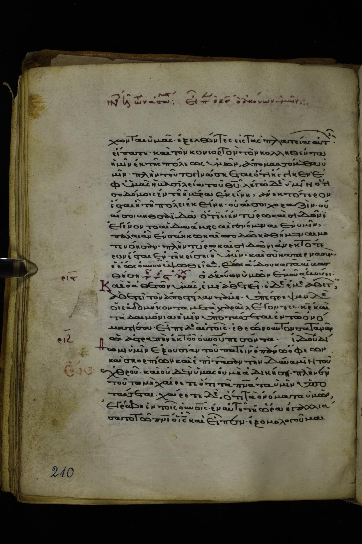 Twelfth or thirteenth century minuscule of the Gospels on parchment; 171 leaves, 1 column, 26-28 lines per column. Images were taken at the National Library of Greece in Athens.