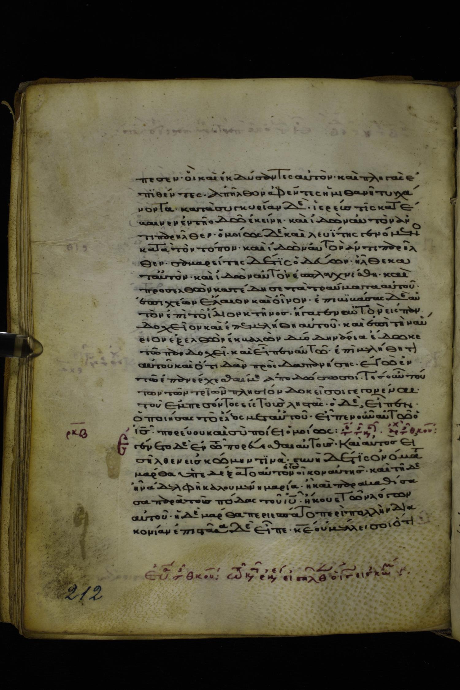 Twelfth or thirteenth century minuscule of the Gospels on parchment; 171 leaves, 1 column, 26-28 lines per column. Images were taken at the National Library of Greece in Athens.
