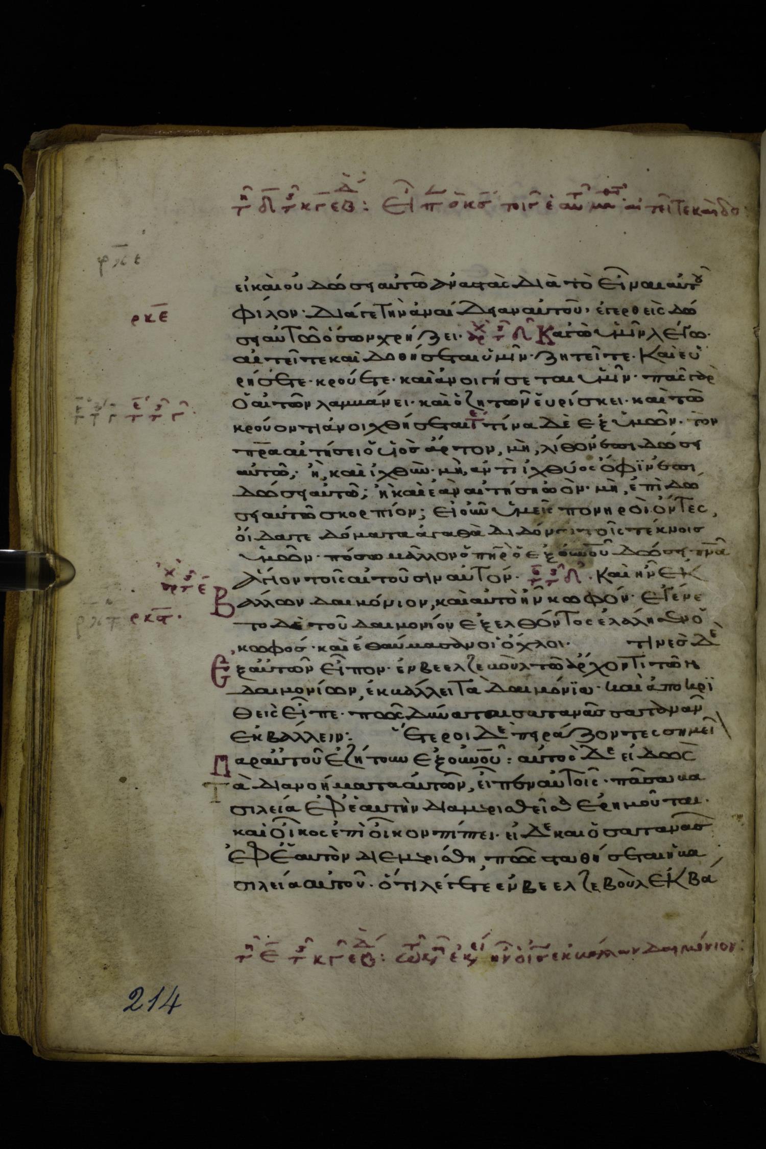Twelfth or thirteenth century minuscule of the Gospels on parchment; 171 leaves, 1 column, 26-28 lines per column. Images were taken at the National Library of Greece in Athens.