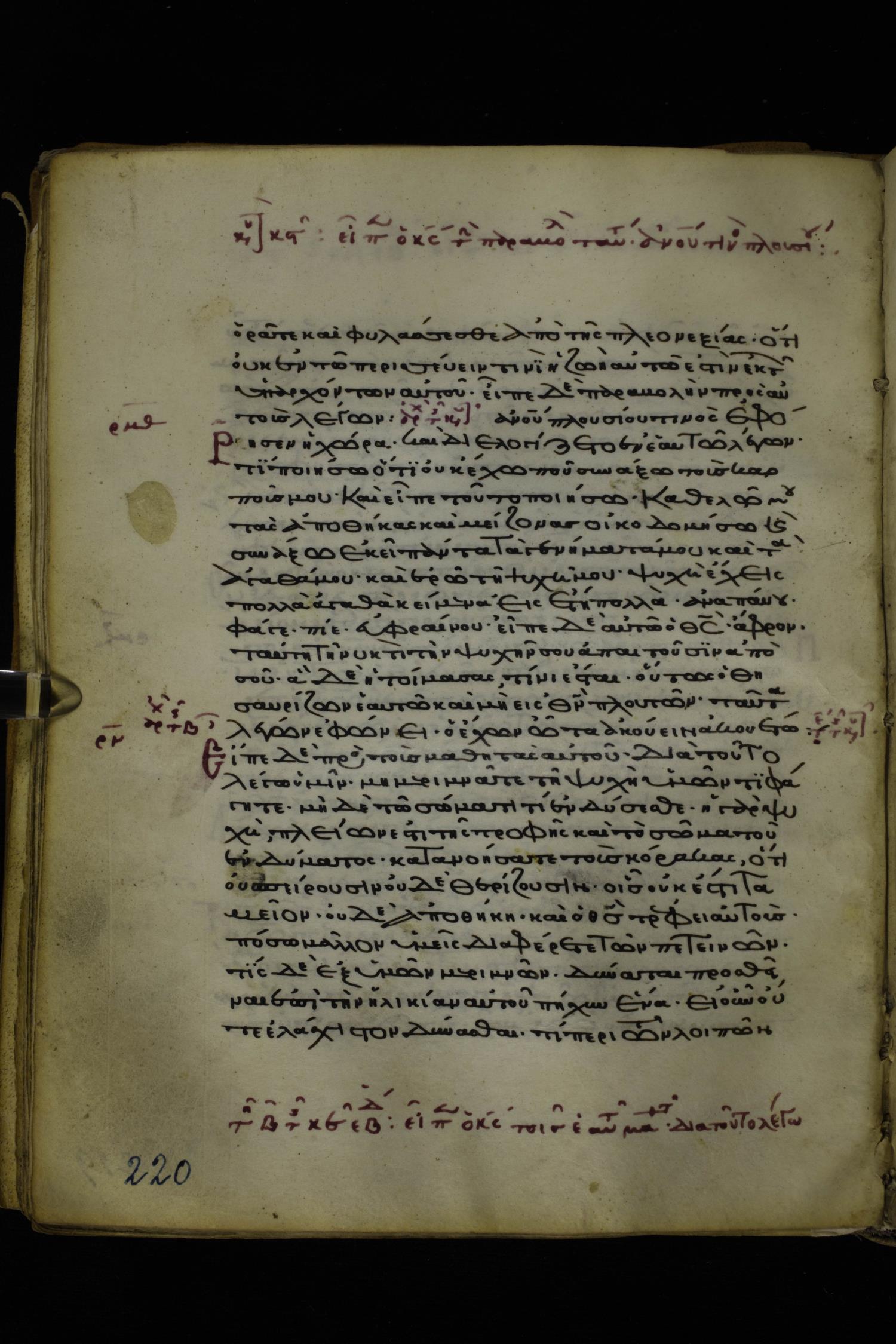 Twelfth or thirteenth century minuscule of the Gospels on parchment; 171 leaves, 1 column, 26-28 lines per column. Images were taken at the National Library of Greece in Athens.