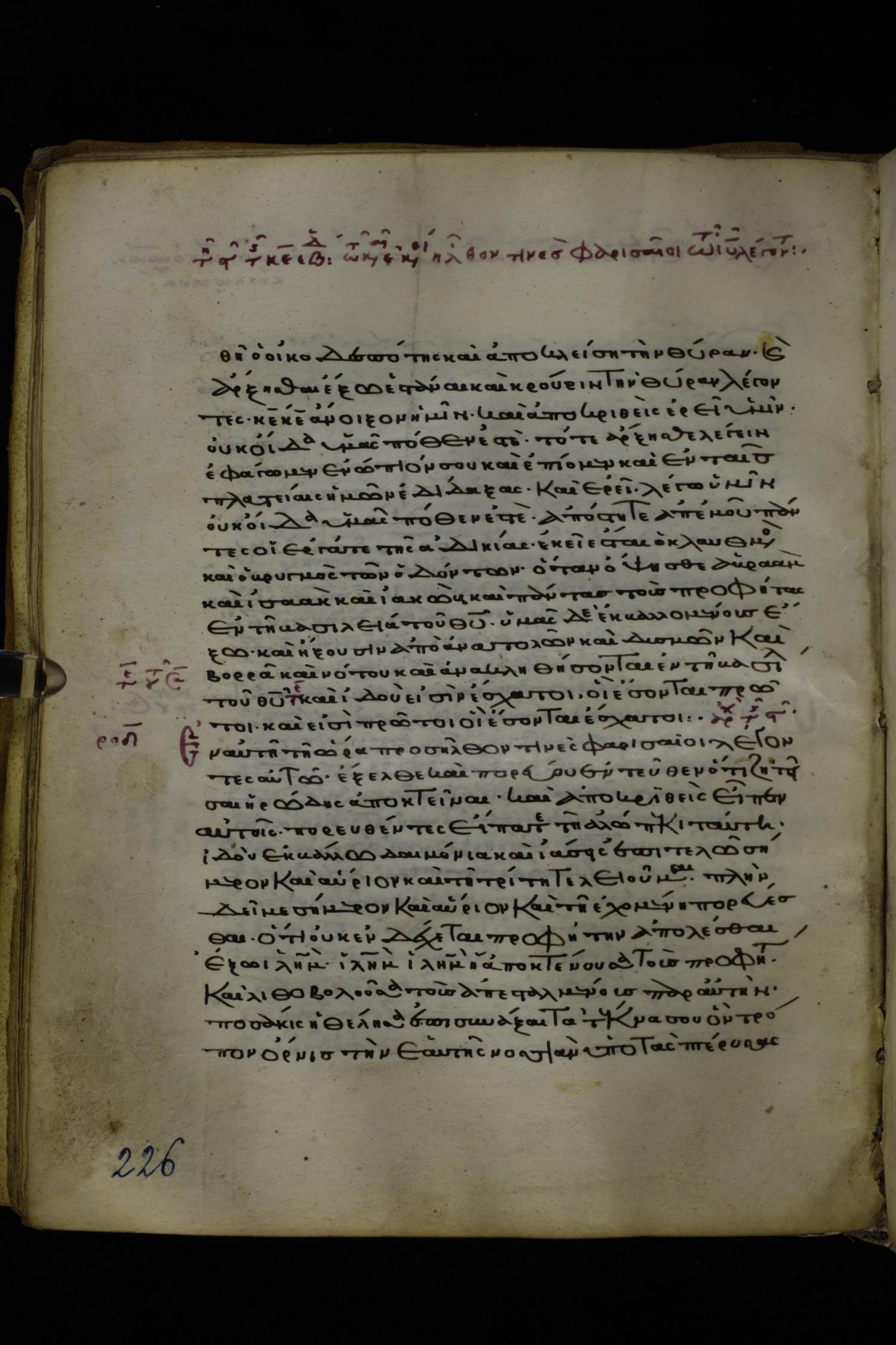 Twelfth or thirteenth century minuscule of the Gospels on parchment; 171 leaves, 1 column, 26-28 lines per column. Images were taken at the National Library of Greece in Athens.