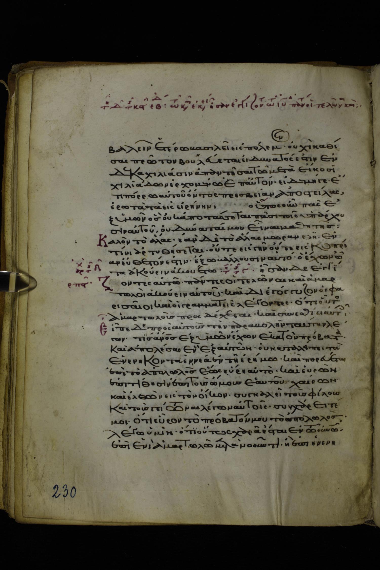 Twelfth or thirteenth century minuscule of the Gospels on parchment; 171 leaves, 1 column, 26-28 lines per column. Images were taken at the National Library of Greece in Athens.