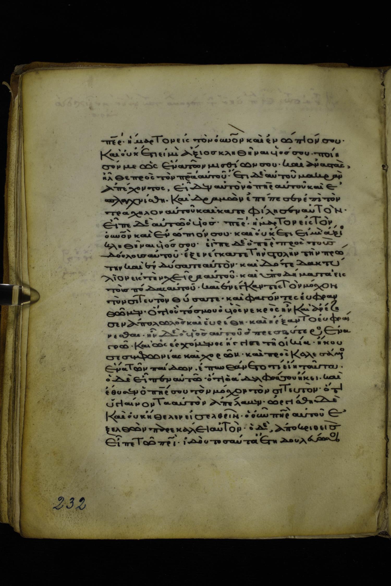 Twelfth or thirteenth century minuscule of the Gospels on parchment; 171 leaves, 1 column, 26-28 lines per column. Images were taken at the National Library of Greece in Athens.