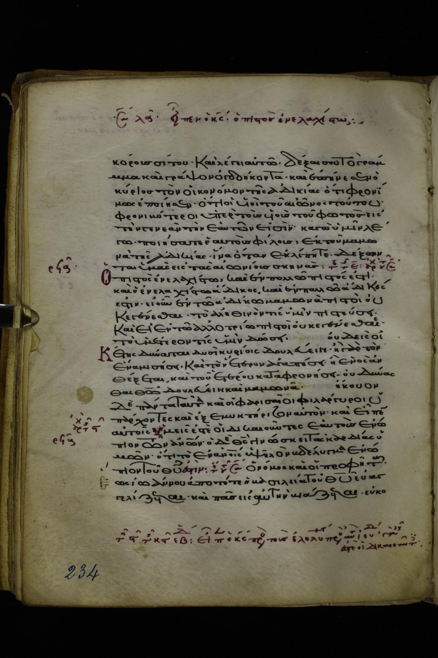 Twelfth or thirteenth century minuscule of the Gospels on parchment; 171 leaves, 1 column, 26-28 lines per column. Images were taken at the National Library of Greece in Athens.