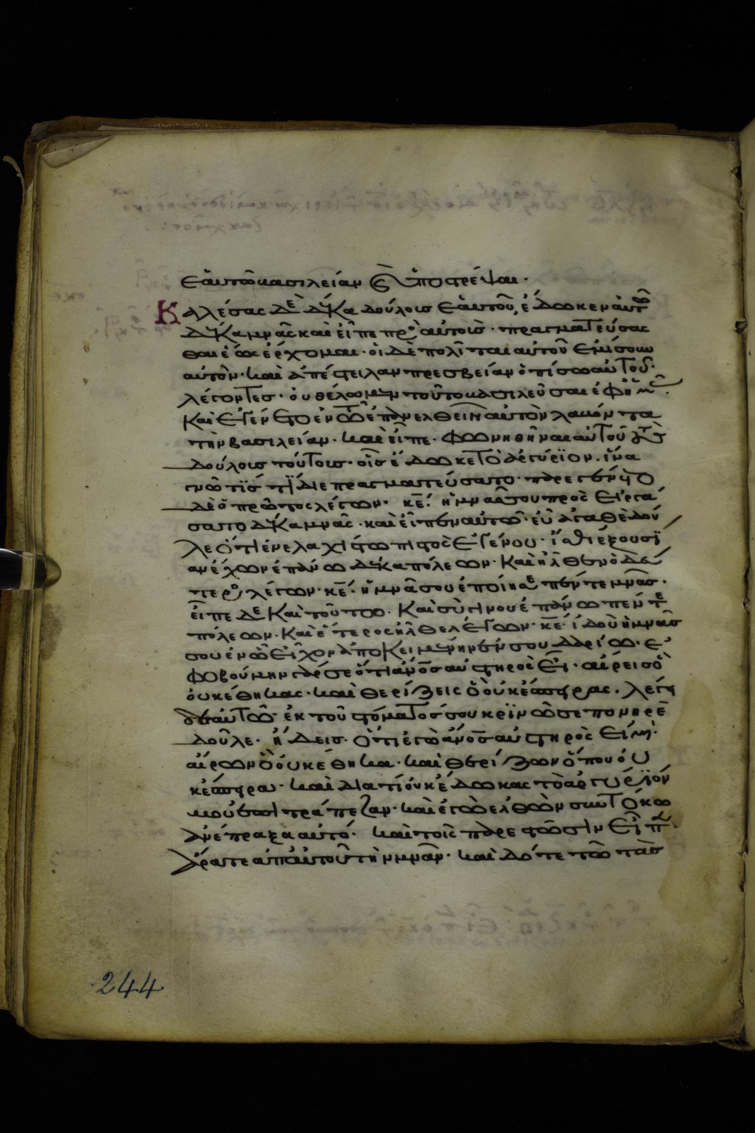 Twelfth or thirteenth century minuscule of the Gospels on parchment; 171 leaves, 1 column, 26-28 lines per column. Images were taken at the National Library of Greece in Athens.
