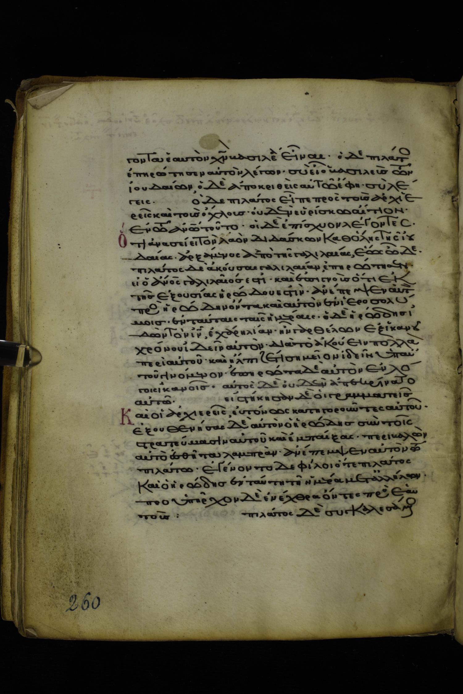 Twelfth or thirteenth century minuscule of the Gospels on parchment; 171 leaves, 1 column, 26-28 lines per column. Images were taken at the National Library of Greece in Athens.