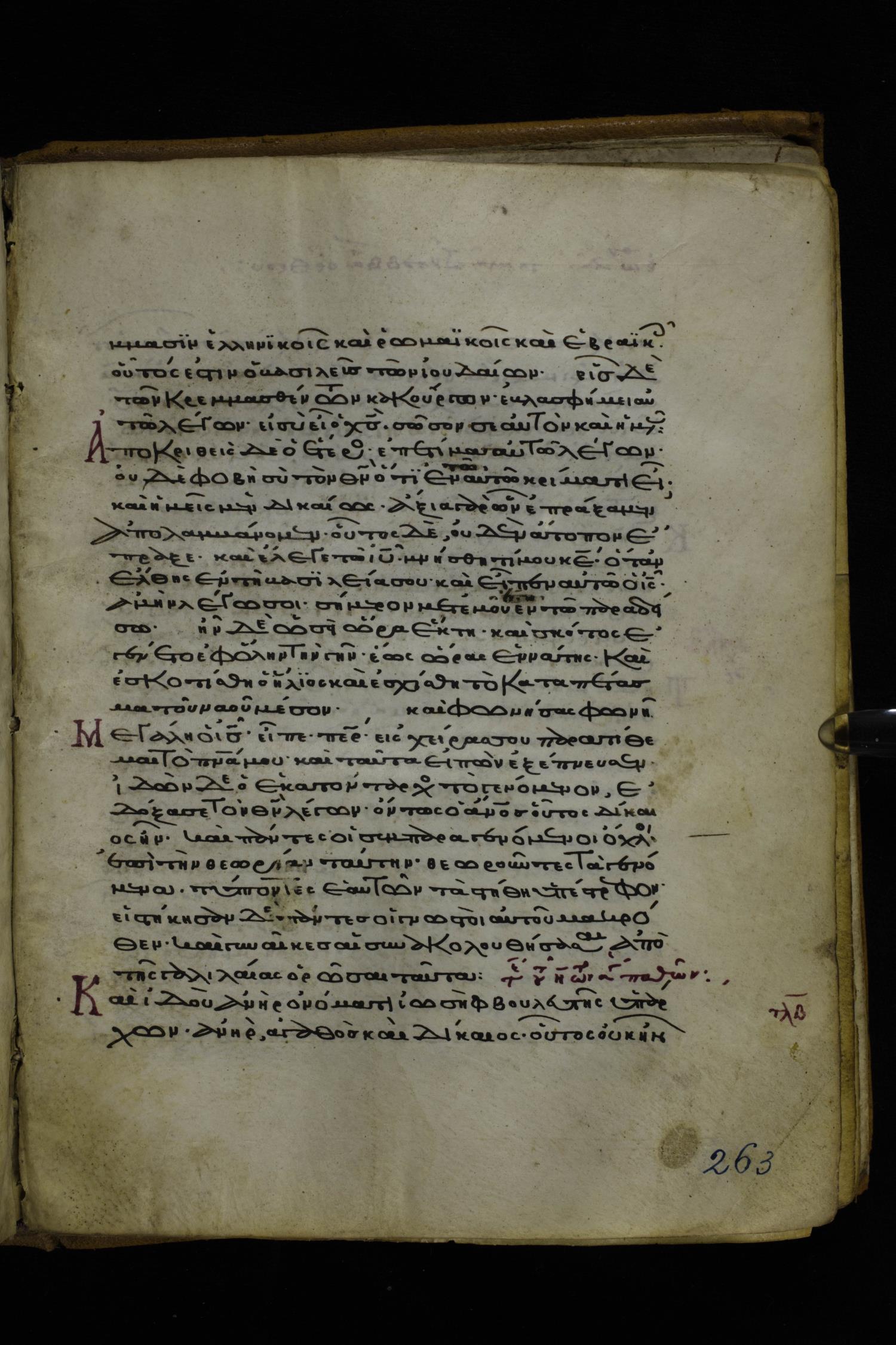 Twelfth or thirteenth century minuscule of the Gospels on parchment; 171 leaves, 1 column, 26-28 lines per column. Images were taken at the National Library of Greece in Athens.
