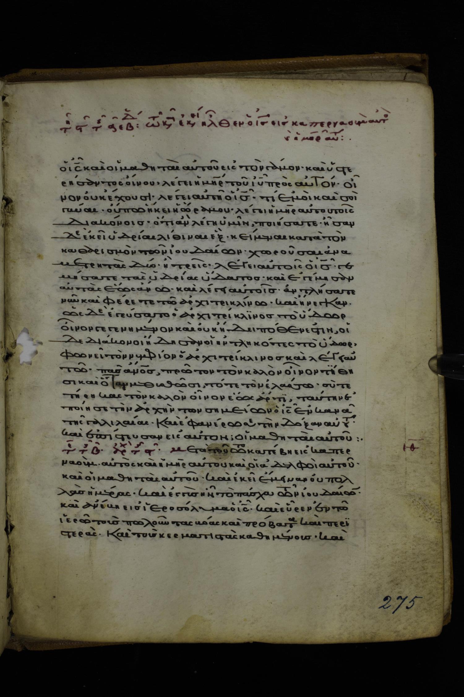 Twelfth or thirteenth century minuscule of the Gospels on parchment; 171 leaves, 1 column, 26-28 lines per column. Images were taken at the National Library of Greece in Athens.