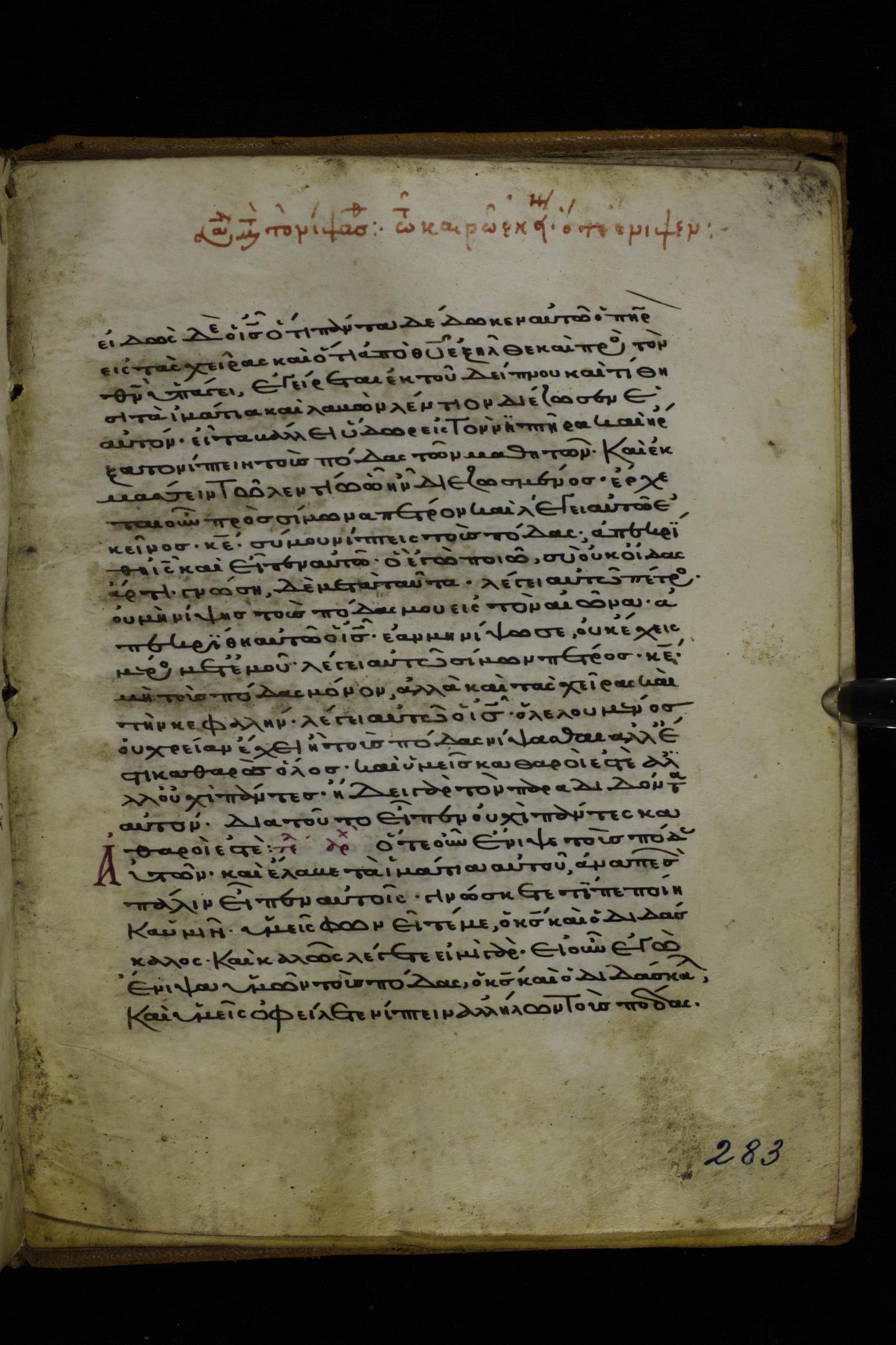 Twelfth or thirteenth century minuscule of the Gospels on parchment; 171 leaves, 1 column, 26-28 lines per column. Images were taken at the National Library of Greece in Athens.