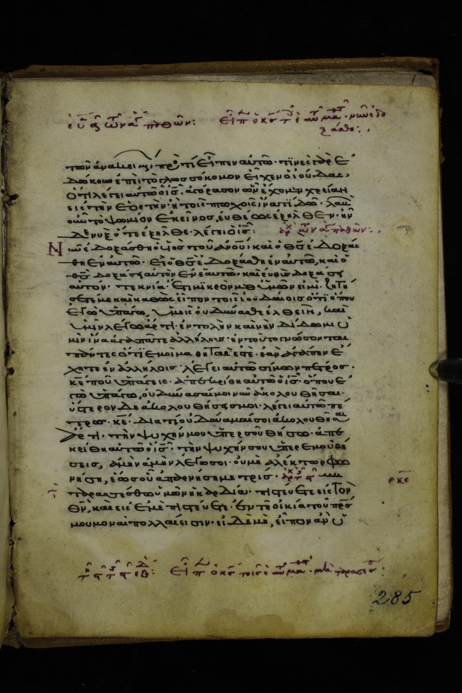 Twelfth or thirteenth century minuscule of the Gospels on parchment; 171 leaves, 1 column, 26-28 lines per column. Images were taken at the National Library of Greece in Athens.