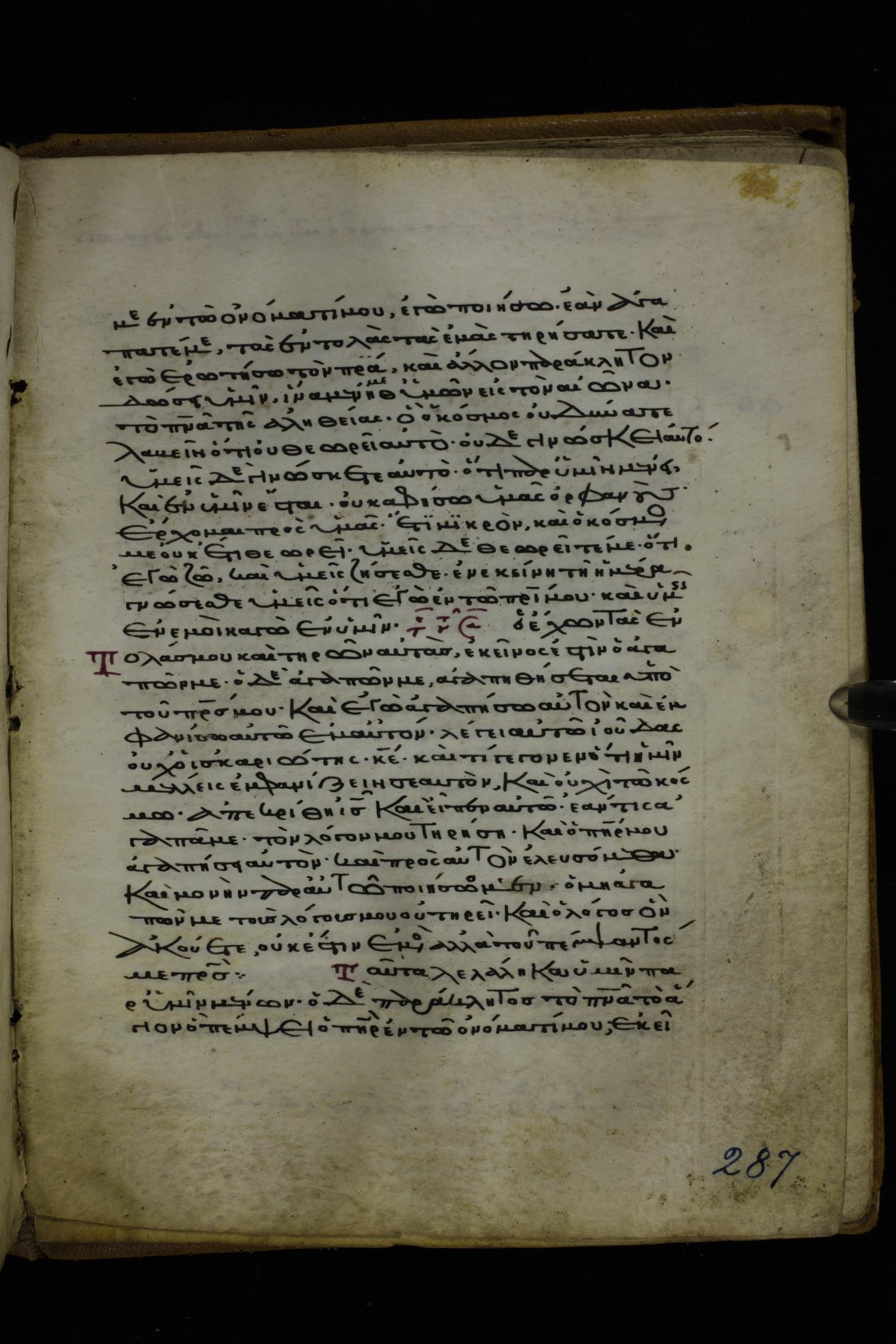 Twelfth or thirteenth century minuscule of the Gospels on parchment; 171 leaves, 1 column, 26-28 lines per column. Images were taken at the National Library of Greece in Athens.
