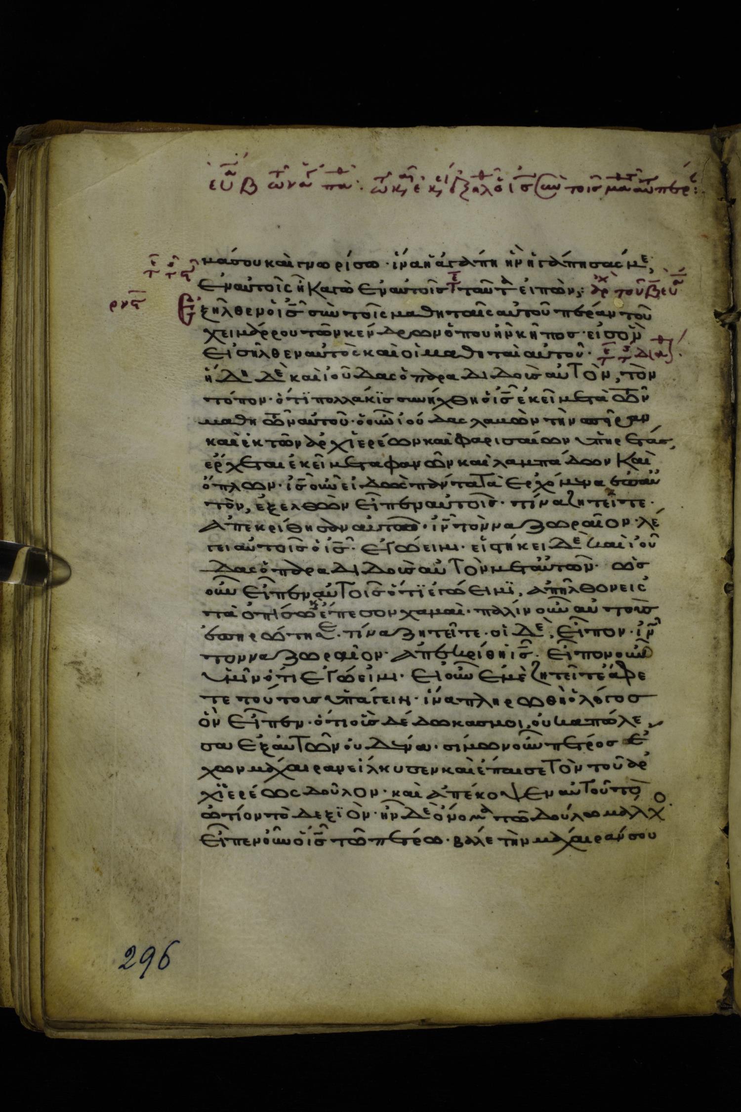 Twelfth or thirteenth century minuscule of the Gospels on parchment; 171 leaves, 1 column, 26-28 lines per column. Images were taken at the National Library of Greece in Athens.