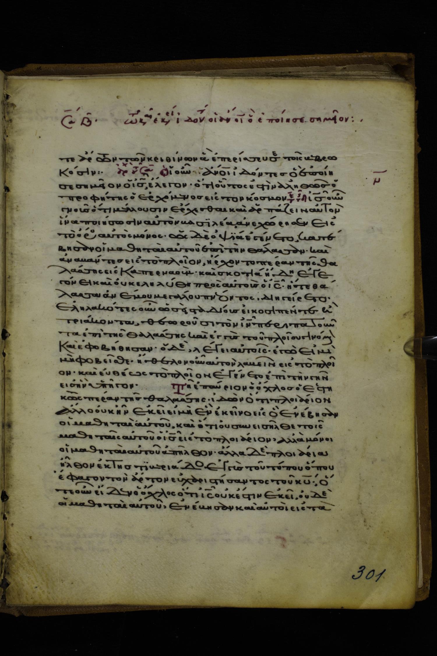 Twelfth or thirteenth century minuscule of the Gospels on parchment; 171 leaves, 1 column, 26-28 lines per column. Images were taken at the National Library of Greece in Athens.