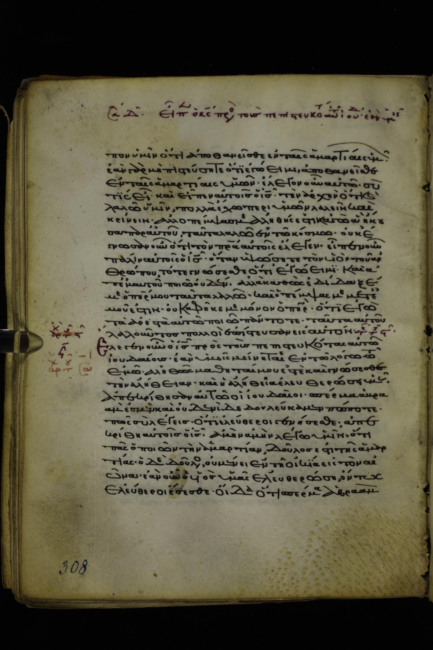 Twelfth or thirteenth century minuscule of the Gospels on parchment; 171 leaves, 1 column, 26-28 lines per column. Images were taken at the National Library of Greece in Athens.