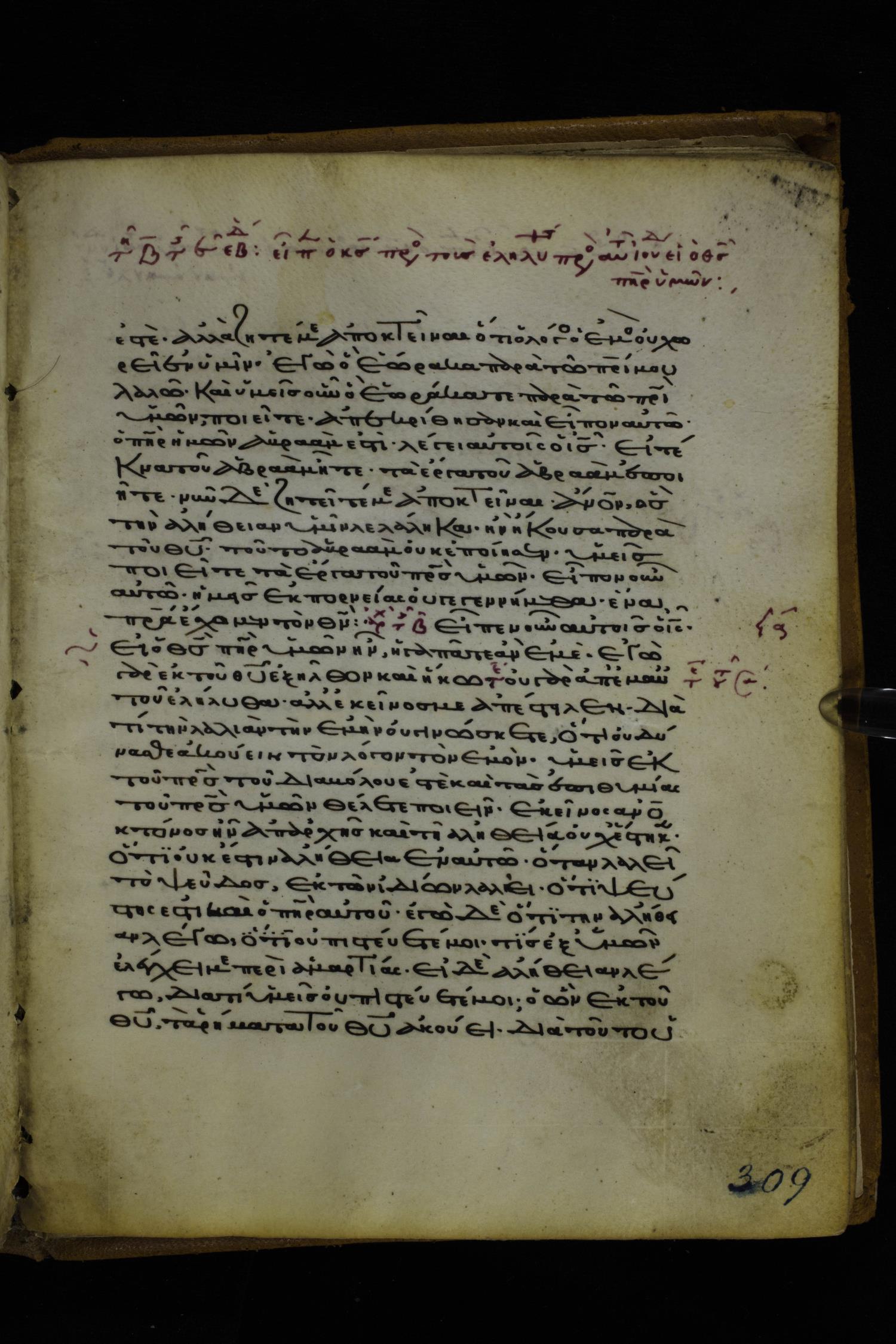 Twelfth or thirteenth century minuscule of the Gospels on parchment; 171 leaves, 1 column, 26-28 lines per column. Images were taken at the National Library of Greece in Athens.