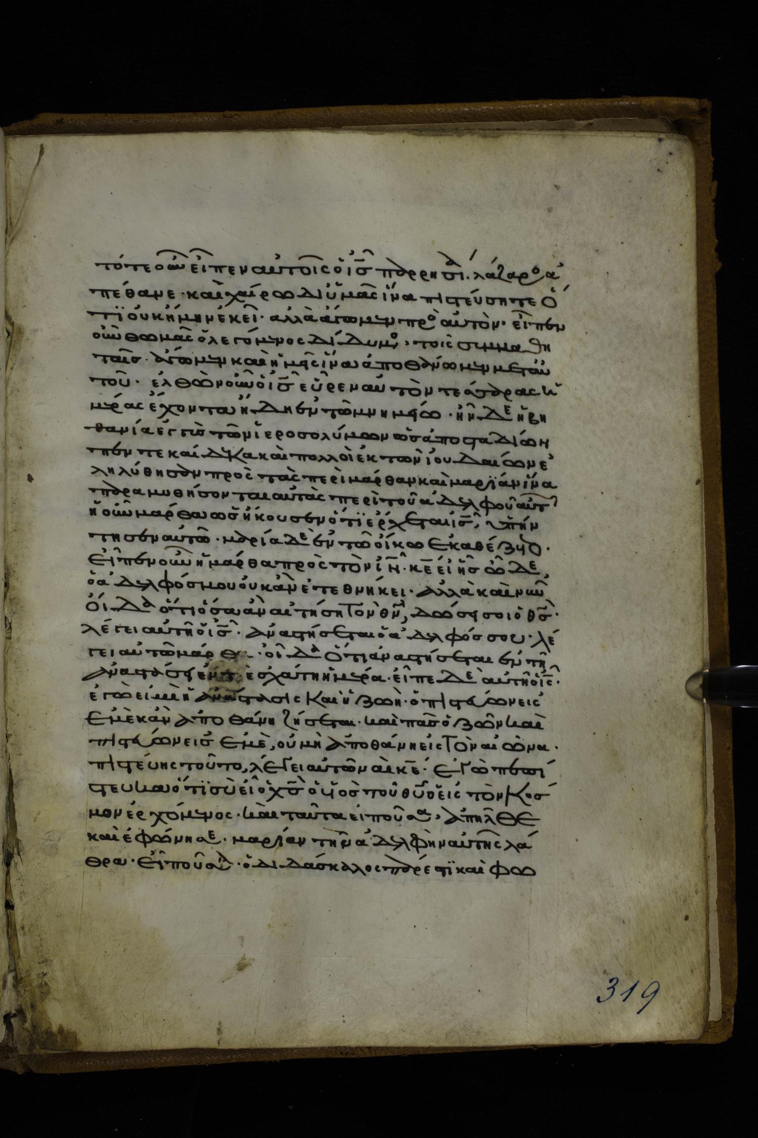 Twelfth or thirteenth century minuscule of the Gospels on parchment; 171 leaves, 1 column, 26-28 lines per column. Images were taken at the National Library of Greece in Athens.