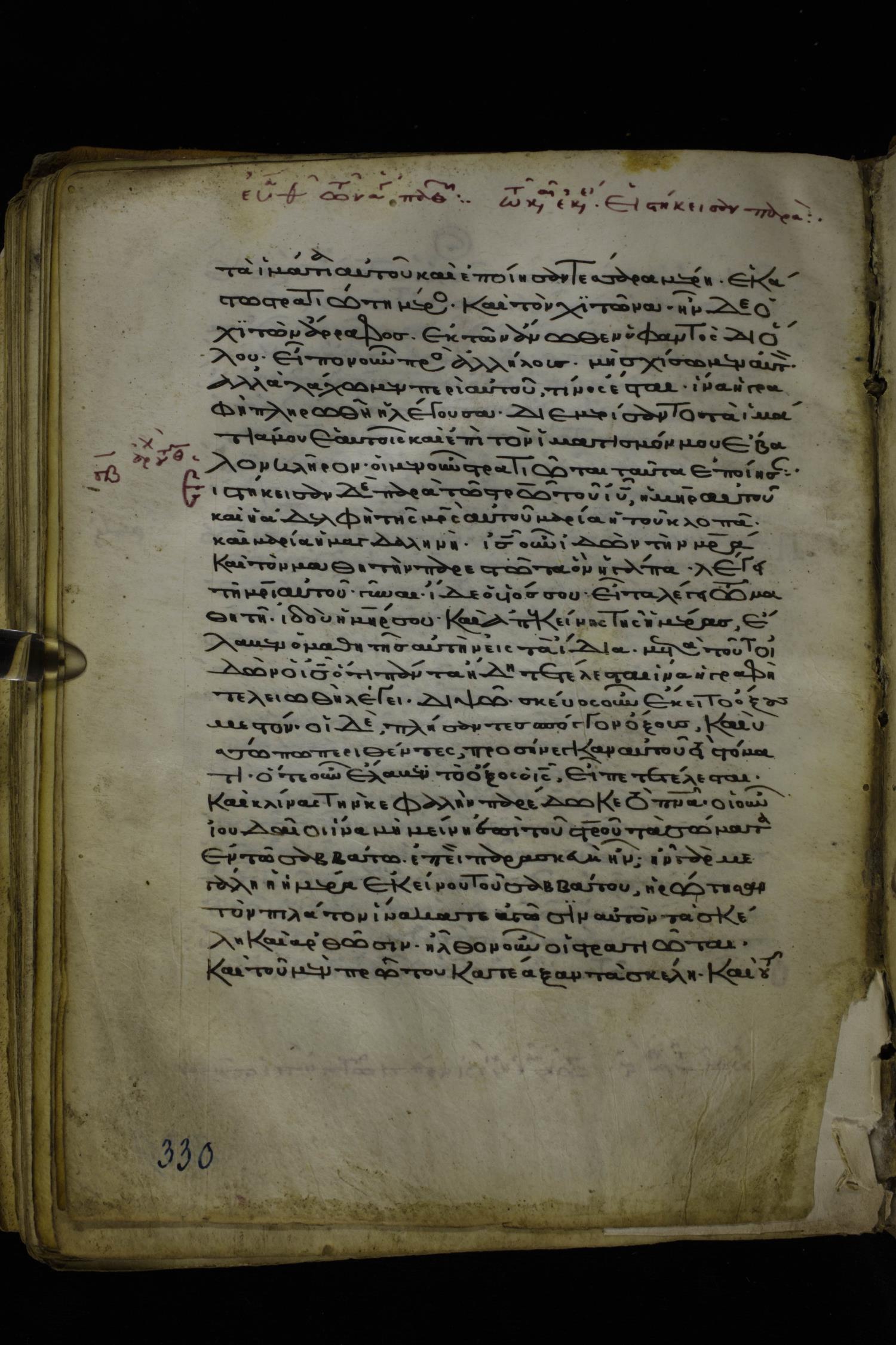 Twelfth or thirteenth century minuscule of the Gospels on parchment; 171 leaves, 1 column, 26-28 lines per column. Images were taken at the National Library of Greece in Athens.