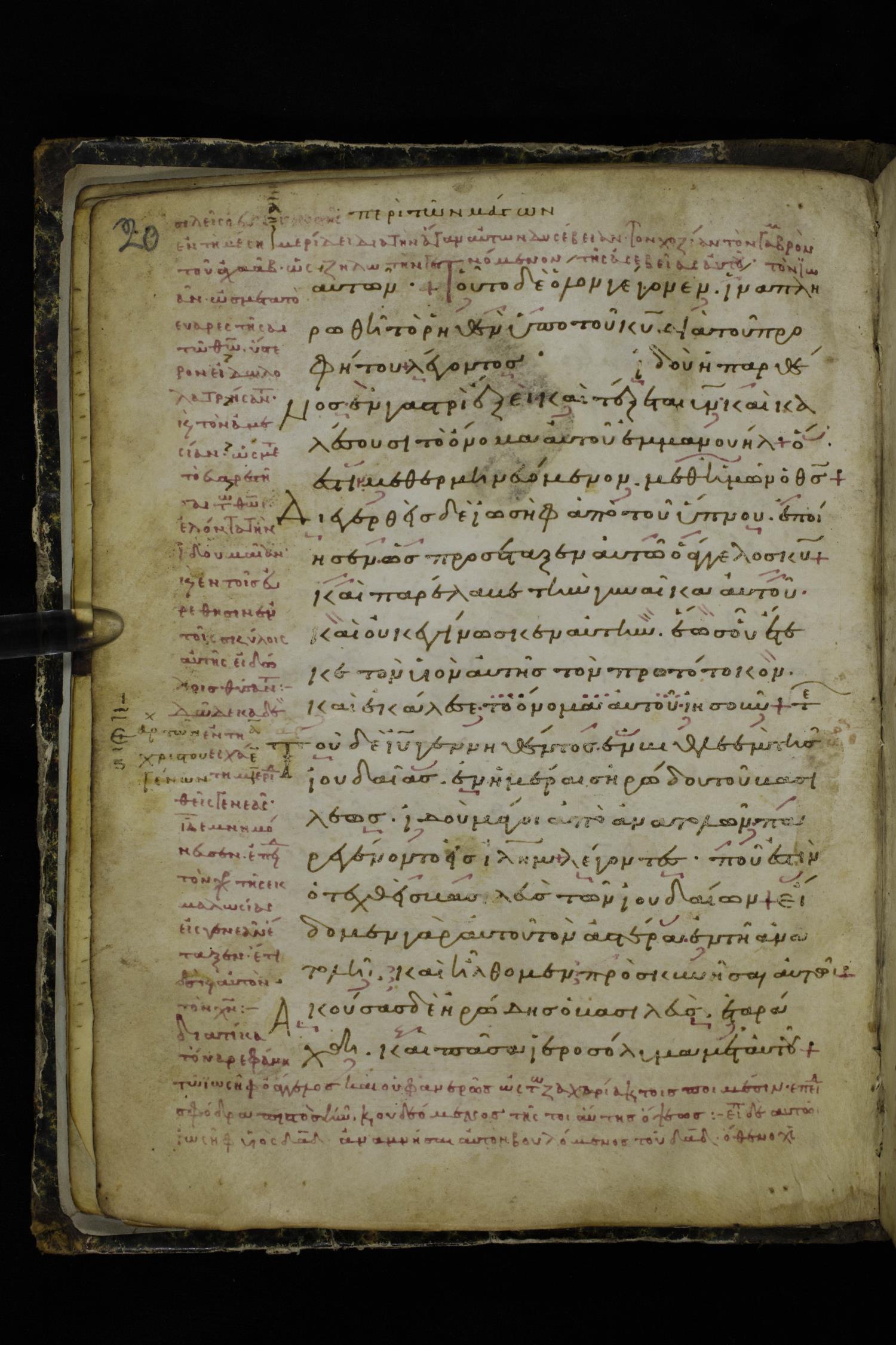 Eleventh century minuscule of the Gospels on parchment; 241 leaves, 1 column, 22 lines per column. Images were taken at the National Library of Greece in Athens.