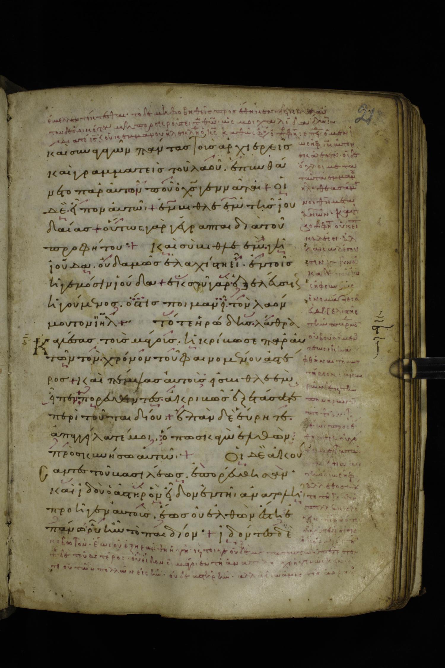 Eleventh century minuscule of the Gospels on parchment; 241 leaves, 1 column, 22 lines per column. Images were taken at the National Library of Greece in Athens.