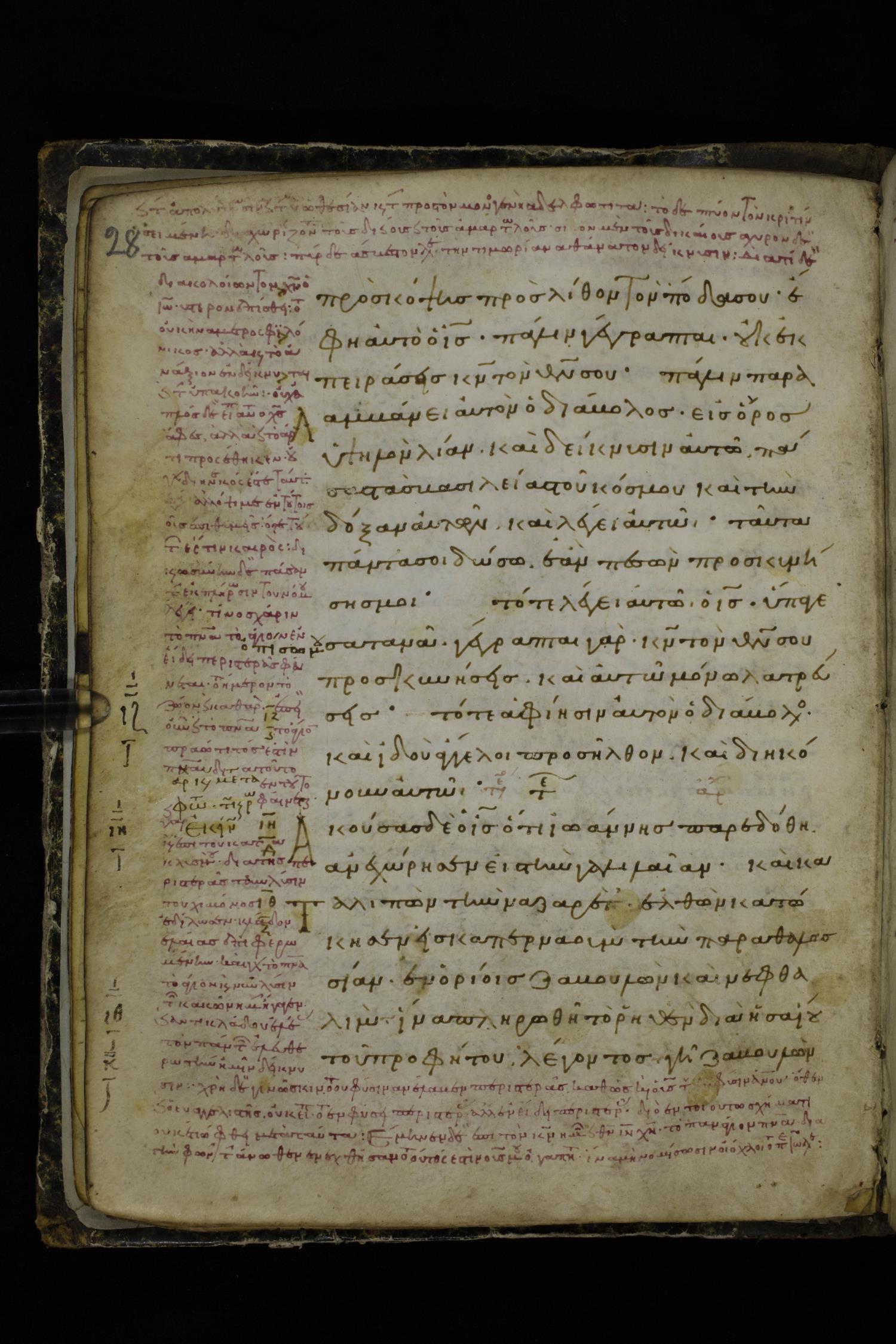 Eleventh century minuscule of the Gospels on parchment; 241 leaves, 1 column, 22 lines per column. Images were taken at the National Library of Greece in Athens.