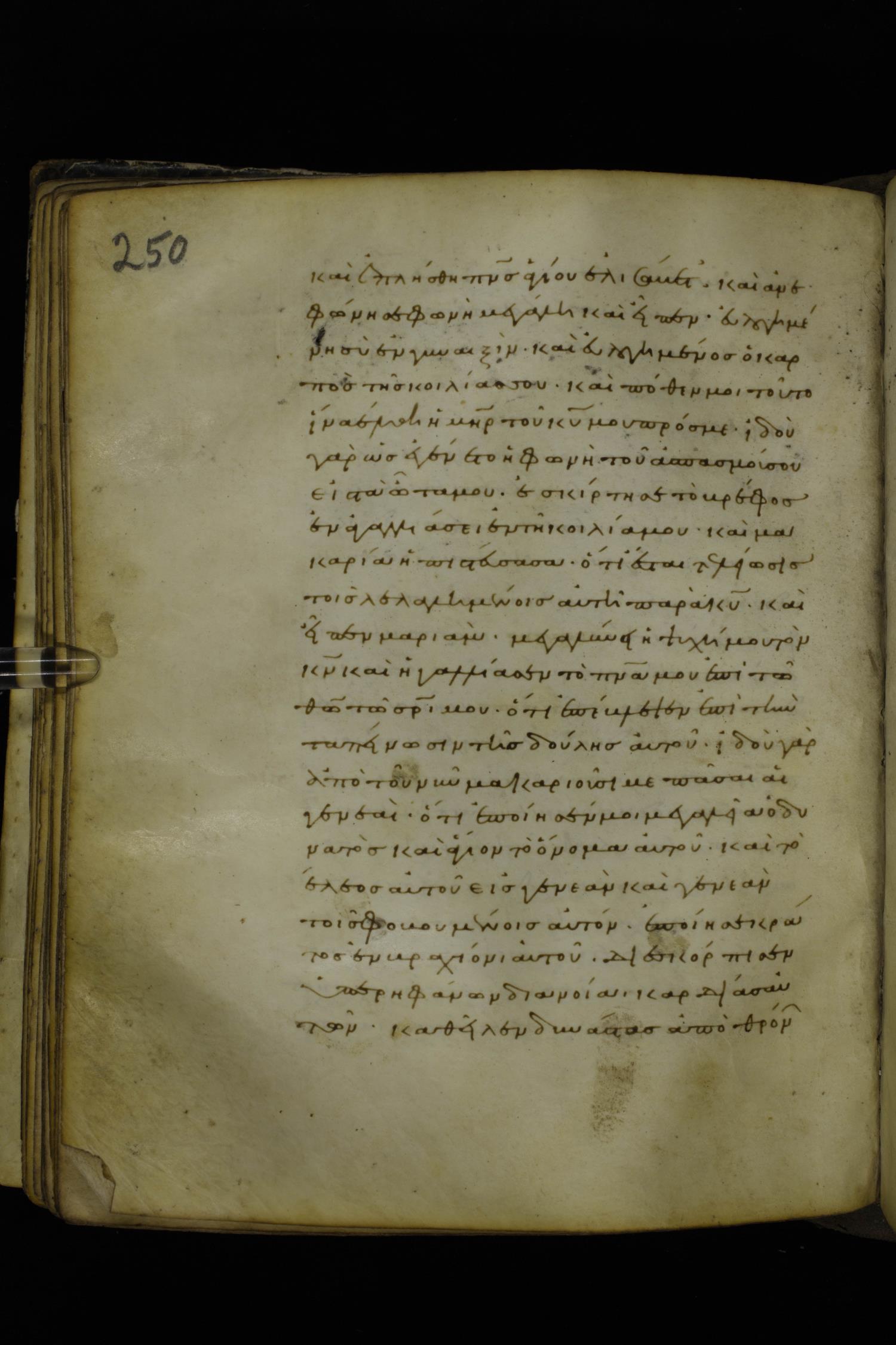 Eleventh century minuscule of the Gospels on parchment; 241 leaves, 1 column, 22 lines per column. Images were taken at the National Library of Greece in Athens.