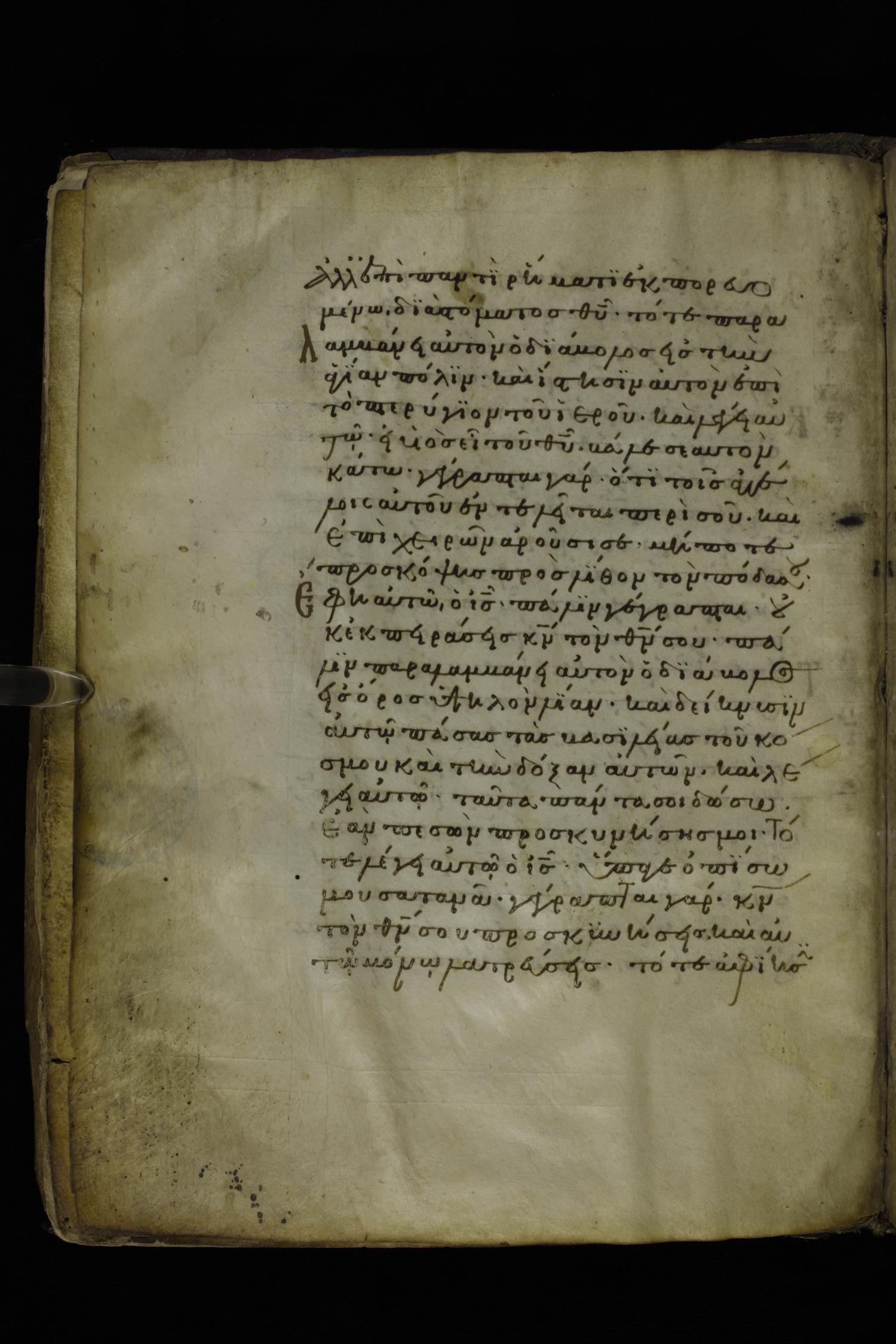 Twelfth century minuscule of the Gospels on parchment; 277 leaves, 1 column, 22 lines per column. Images were taken at the National Library of Greece in Athens.
