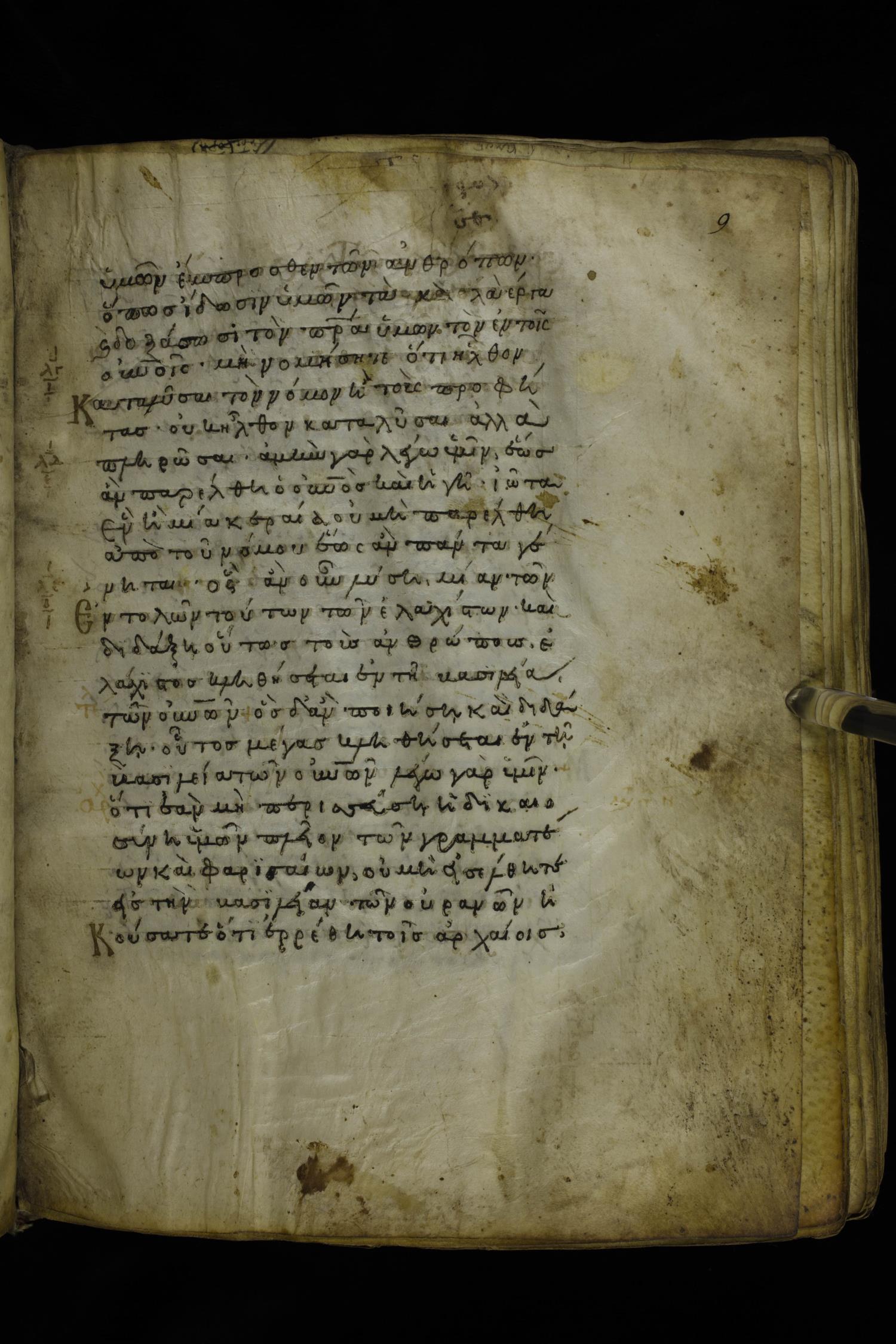 Twelfth century minuscule of the Gospels on parchment; 277 leaves, 1 column, 22 lines per column. Images were taken at the National Library of Greece in Athens.