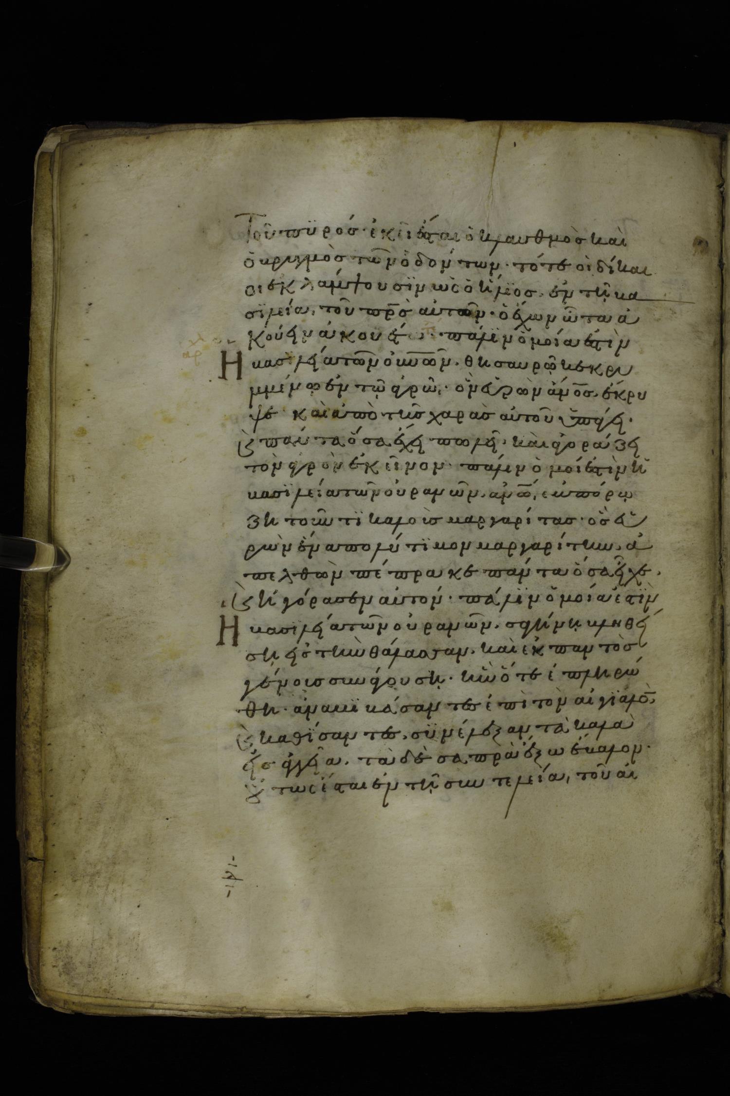 Twelfth century minuscule of the Gospels on parchment; 277 leaves, 1 column, 22 lines per column. Images were taken at the National Library of Greece in Athens.