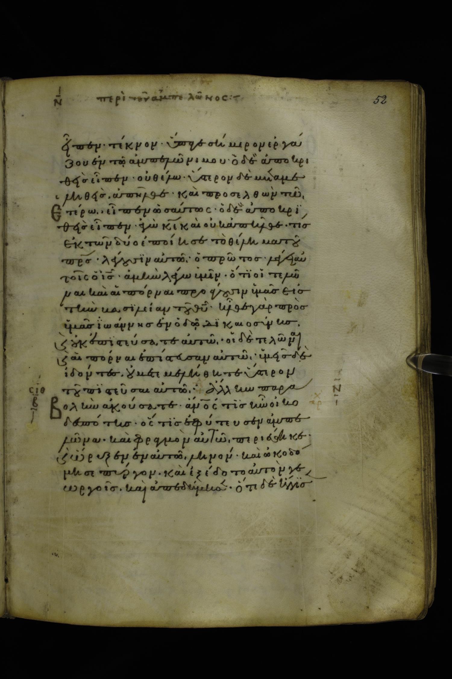 Twelfth century minuscule of the Gospels on parchment; 277 leaves, 1 column, 22 lines per column. Images were taken at the National Library of Greece in Athens.