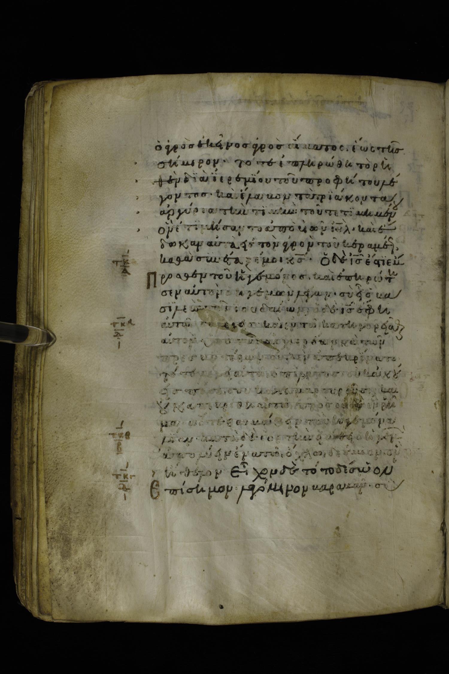 Twelfth century minuscule of the Gospels on parchment; 277 leaves, 1 column, 22 lines per column. Images were taken at the National Library of Greece in Athens.