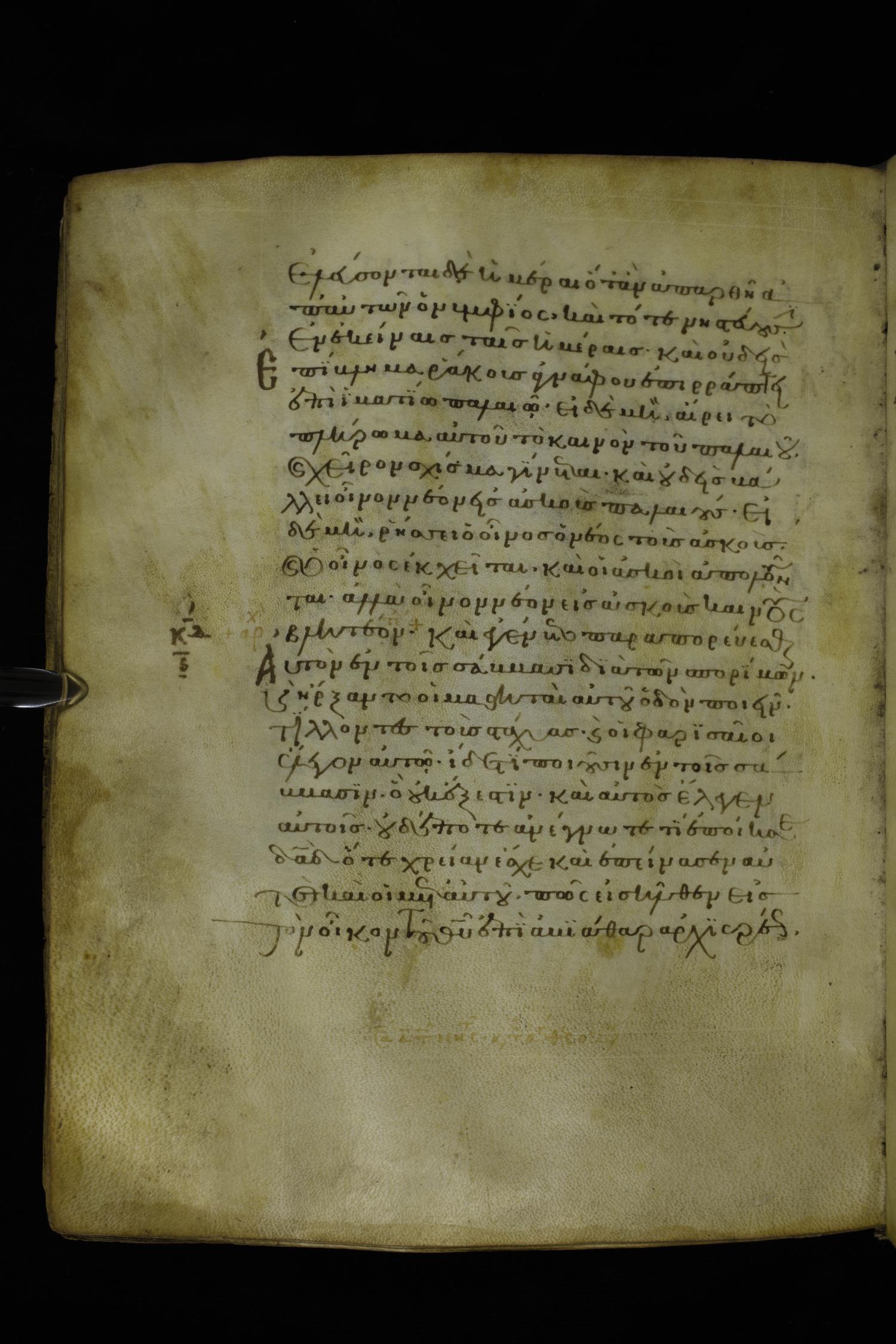 Twelfth century minuscule of the Gospels on parchment; 277 leaves, 1 column, 22 lines per column. Images were taken at the National Library of Greece in Athens.