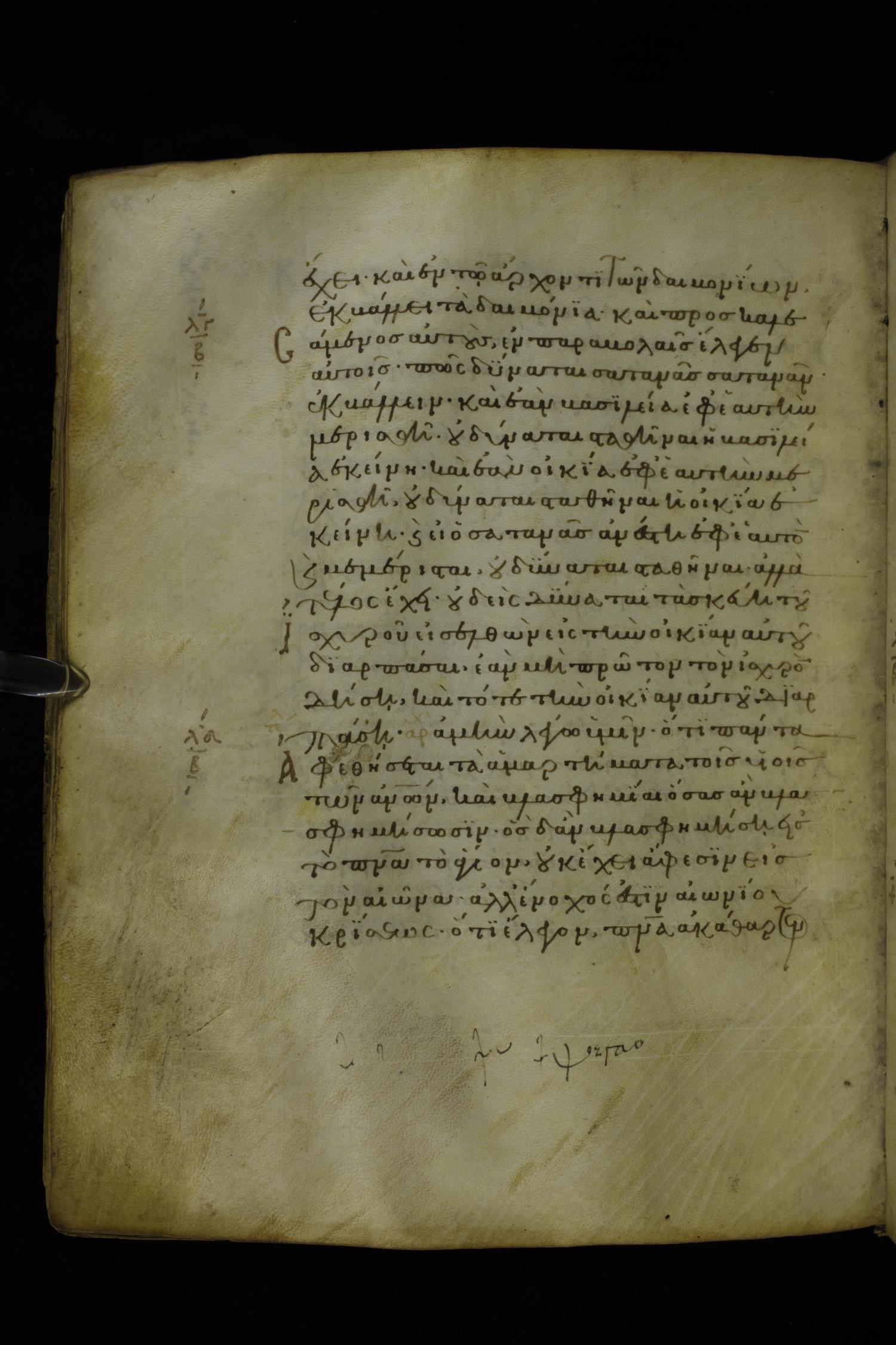 Twelfth century minuscule of the Gospels on parchment; 277 leaves, 1 column, 22 lines per column. Images were taken at the National Library of Greece in Athens.