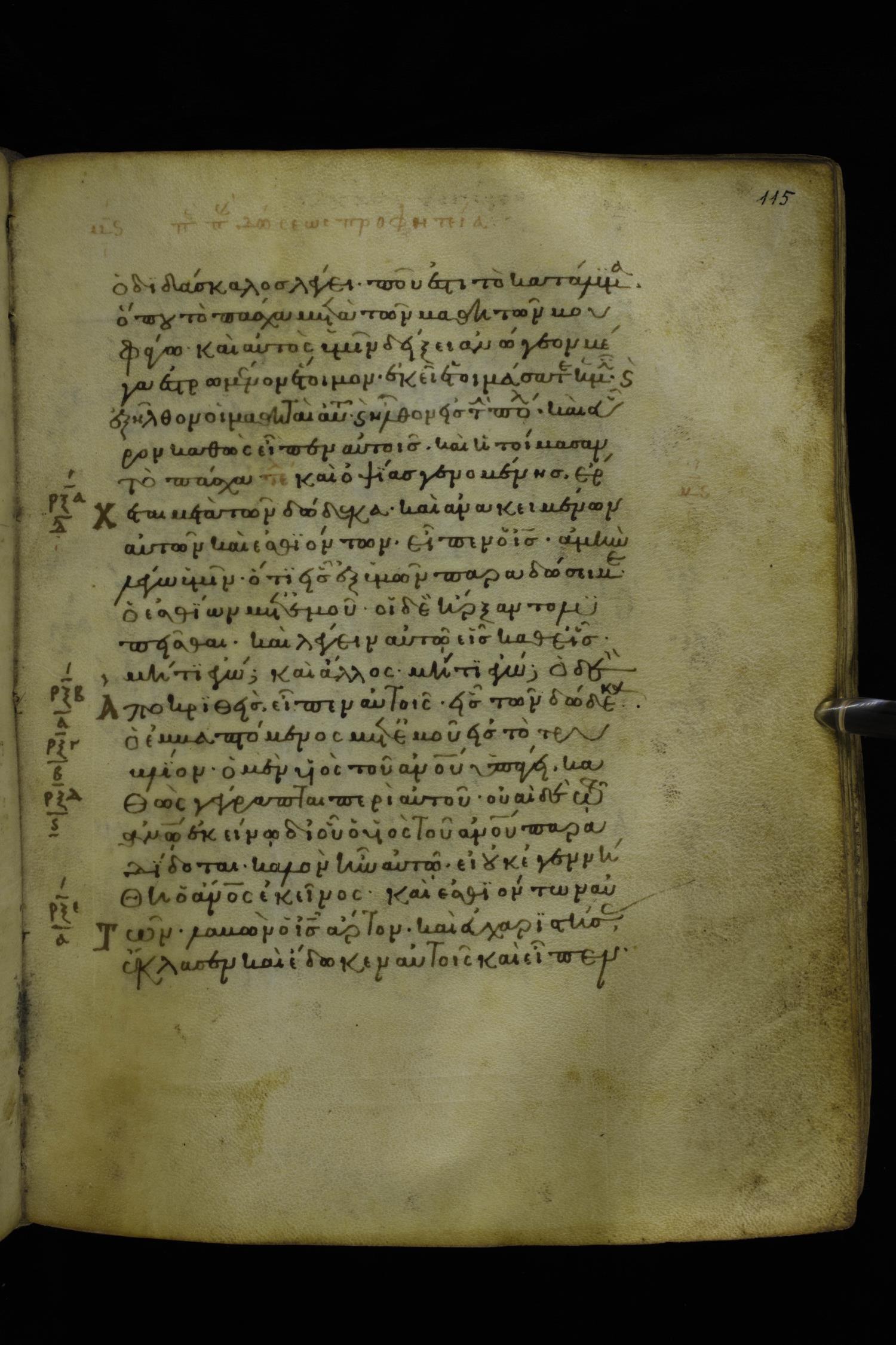 Twelfth century minuscule of the Gospels on parchment; 277 leaves, 1 column, 22 lines per column. Images were taken at the National Library of Greece in Athens.