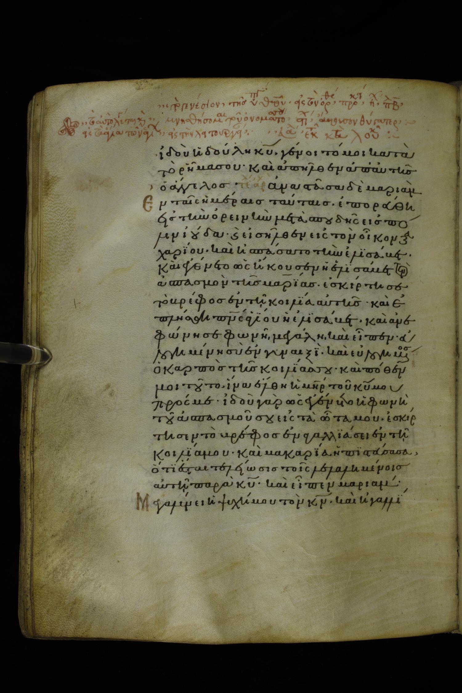 Twelfth century minuscule of the Gospels on parchment; 277 leaves, 1 column, 22 lines per column. Images were taken at the National Library of Greece in Athens.